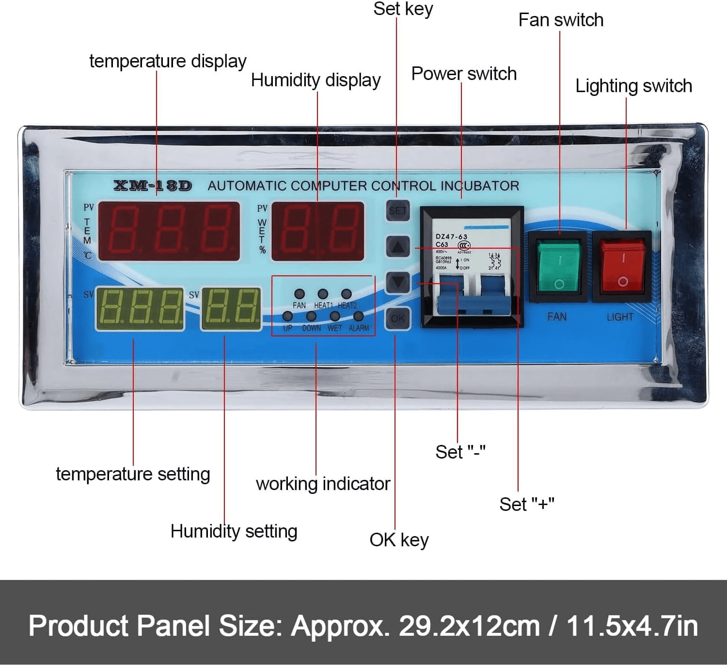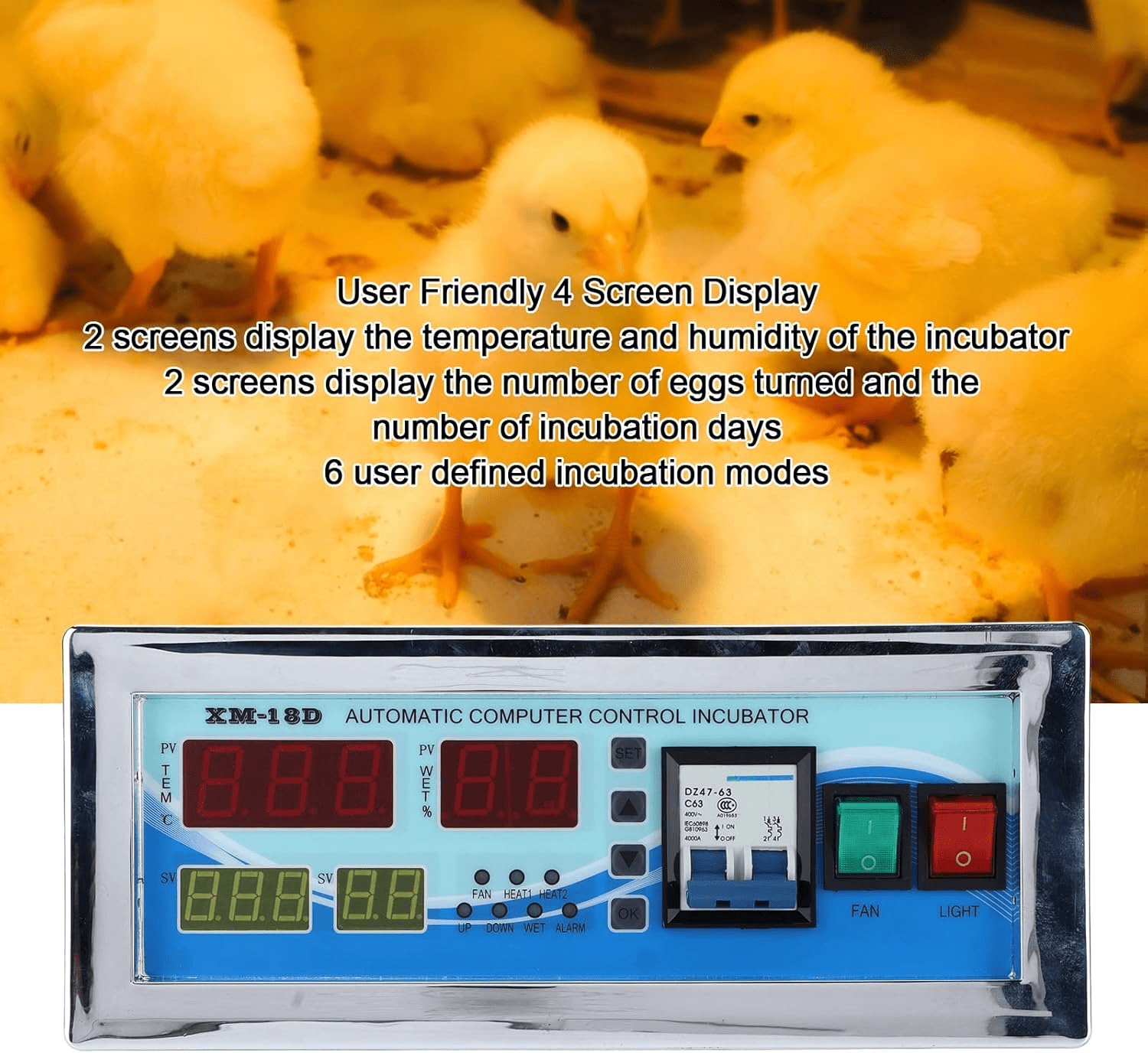 - The 110V Egg Incubator Controller, XM-18D, is designed for homebrewers and hobbyists who seek to achieve optimal incubation conditions for various types of eggs. This advanced device allows users to closely monitor and adjust both temperature and humidity levels, ensuring a stable environment for successful hatching. With its user-friendly interface, it is easy to set up and operate, making it suitable for beginners as well as seasoned incubator users.