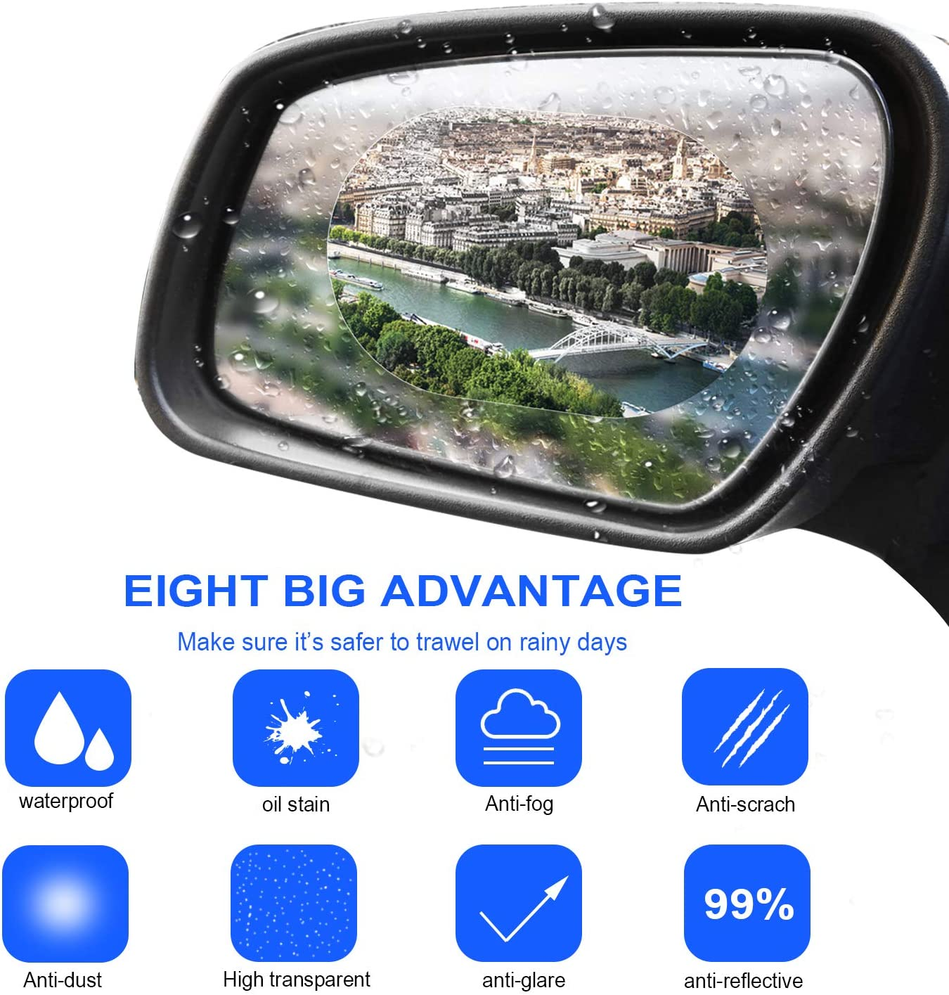 • This innovative Rainproof and Anti-Fog Rearview Mirror Film is designed to enhance your driving experience by ensuring optimal visibility during adverse weather conditions. The film operates effectively on rainy or foggy days, allowing you to maintain a clear view of your surroundings and ensuring safety on the road. Ideal for use on car mirrors and side windows, the film can be easily applied and provides durability for consistent protection in various driving scenarios.