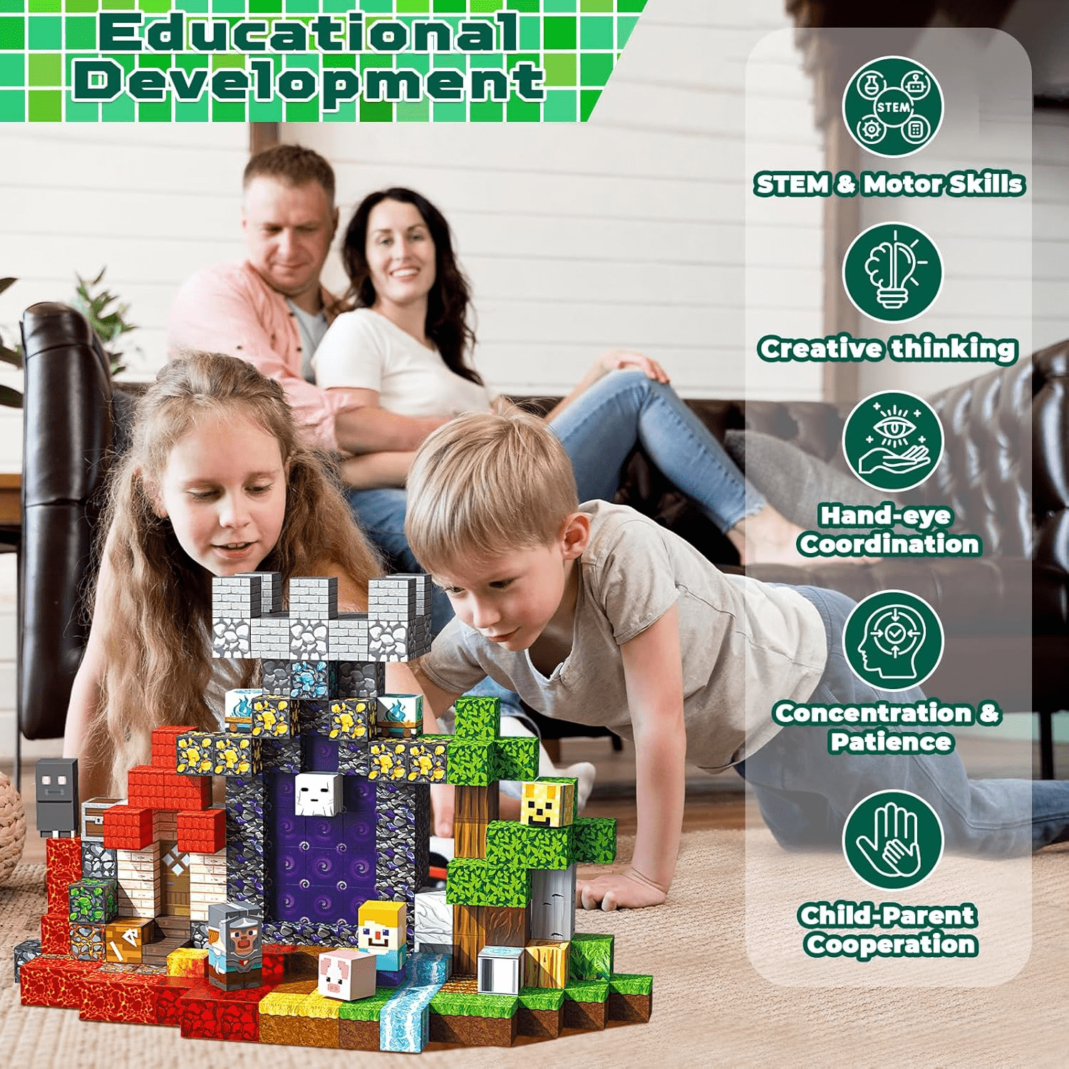 - 【Imagination & Creativity Builder】Embark on an imaginative journey with our magnetic blocks! With themes such as lava, portals, and forests, these blocks invite children to engage in open-ended play. They can build, dismantle, and rebuild their creations at their leisure, fostering essential skills like focus, patience, and fine motor development. These durable and safe cubes are ideal educational toys for children aged 3 and above, ensuring fun, learning, and quality family interactions!