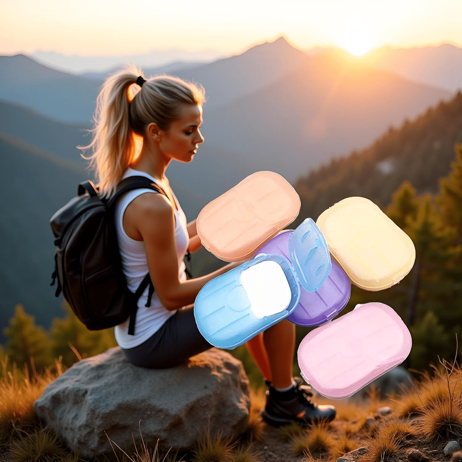 • Stay fresh on outdoor adventures with our portable soap sheets! Perfect for hiking, camping, or picnics, they make handwashing quick and easy—just add water, lather, and rinse. Clean hands, anywhere!