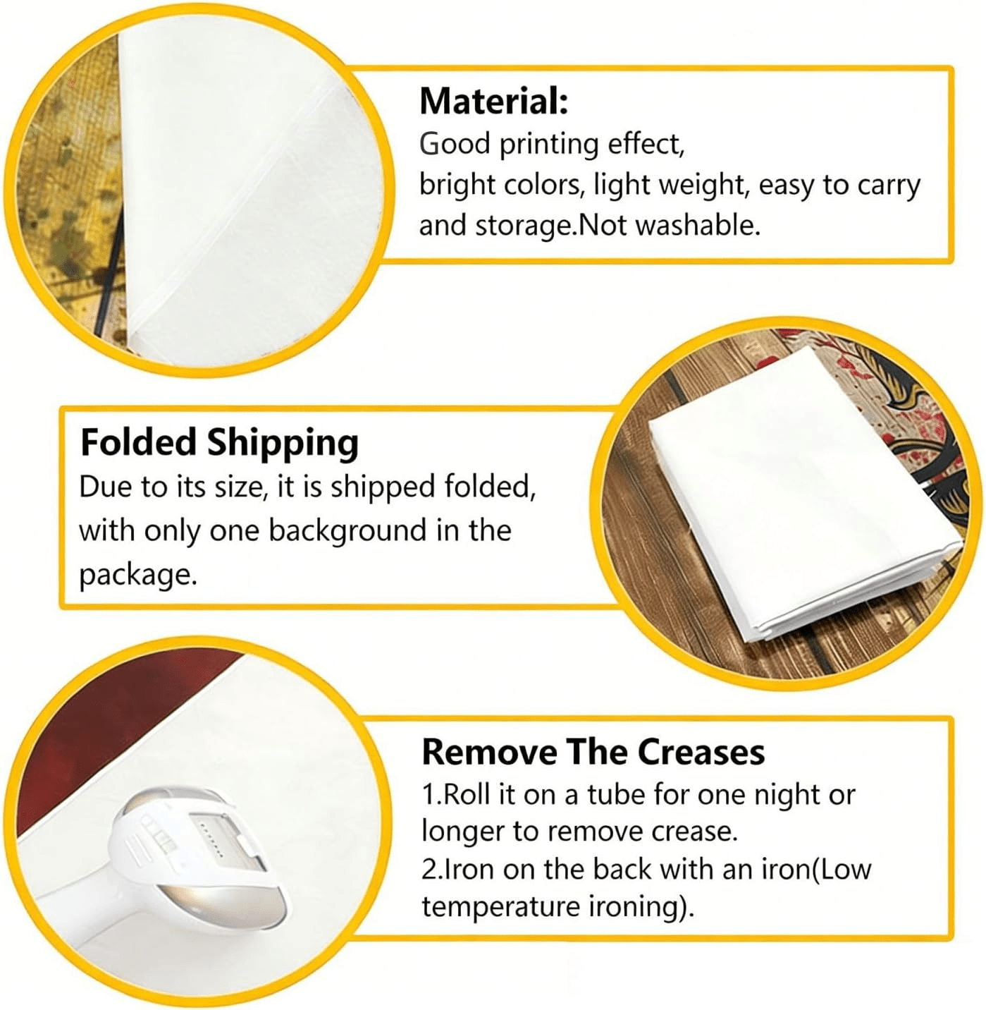 • What You Will Receive: Your order includes a high-quality Brown Wood Grain video backdrop, which arrives folded. Should you notice minor creases upon delivery, simply iron the backside (avoiding the printed surface) to remove wrinkles effectively, ensuring your backdrop is ready for immediate use.