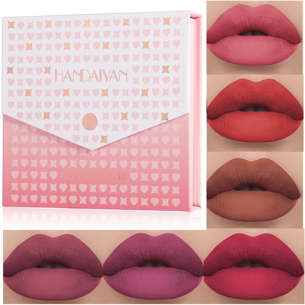 - ★The set includes six vibrant shades, each expertly selected to complement a range of skin tones and preferences. The lipsticks are specifically designed to deliver a charming matte effect that is long-lasting, waterproof, and resistant to smudging, ensuring that your look stays fresh and uninterrupted.