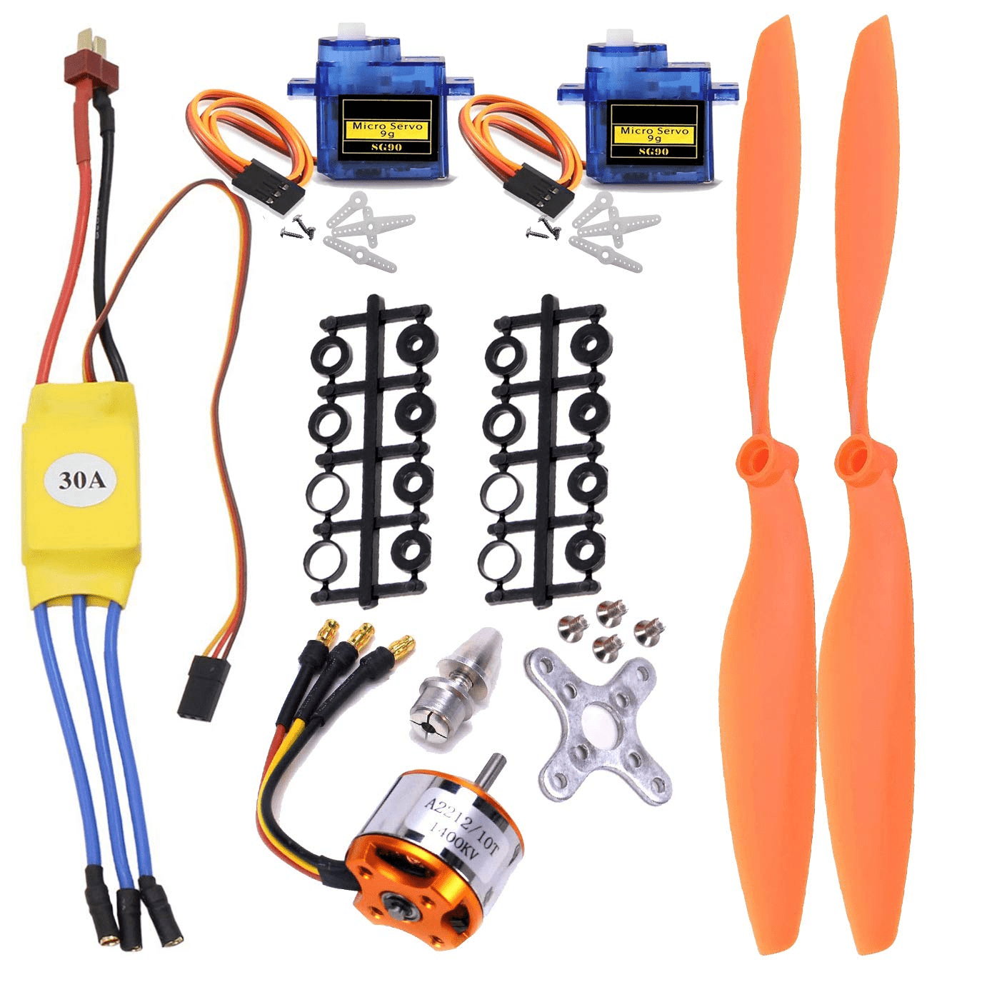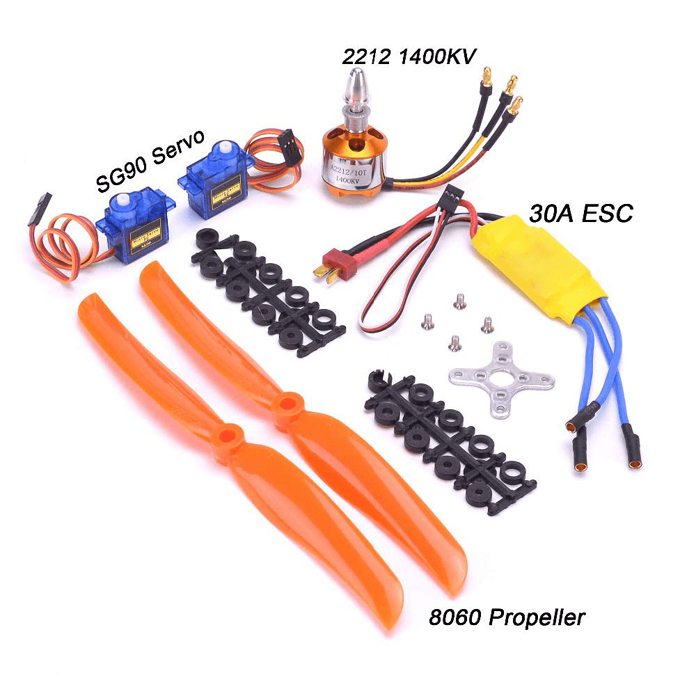 - The Abcgoodefg A2212 1400KV Brushless Motor Set is ideal for hobbyists and professionals alike, seeking to enhance their RC aircraft experience. Designed for compatibility with a variety of applications, this comprehensive set includes a powerful brushless outrunner motor, a high-performance electronic speed controller (ESC), and a pair of precise servos, making it suitable for RC planes, quadcopters, helicopters, and fixed-wing aircraft. With its impressive 1400KV rating, users can expect superior power, efficiency, and responsiveness, ensuring a thrilling flying experience.