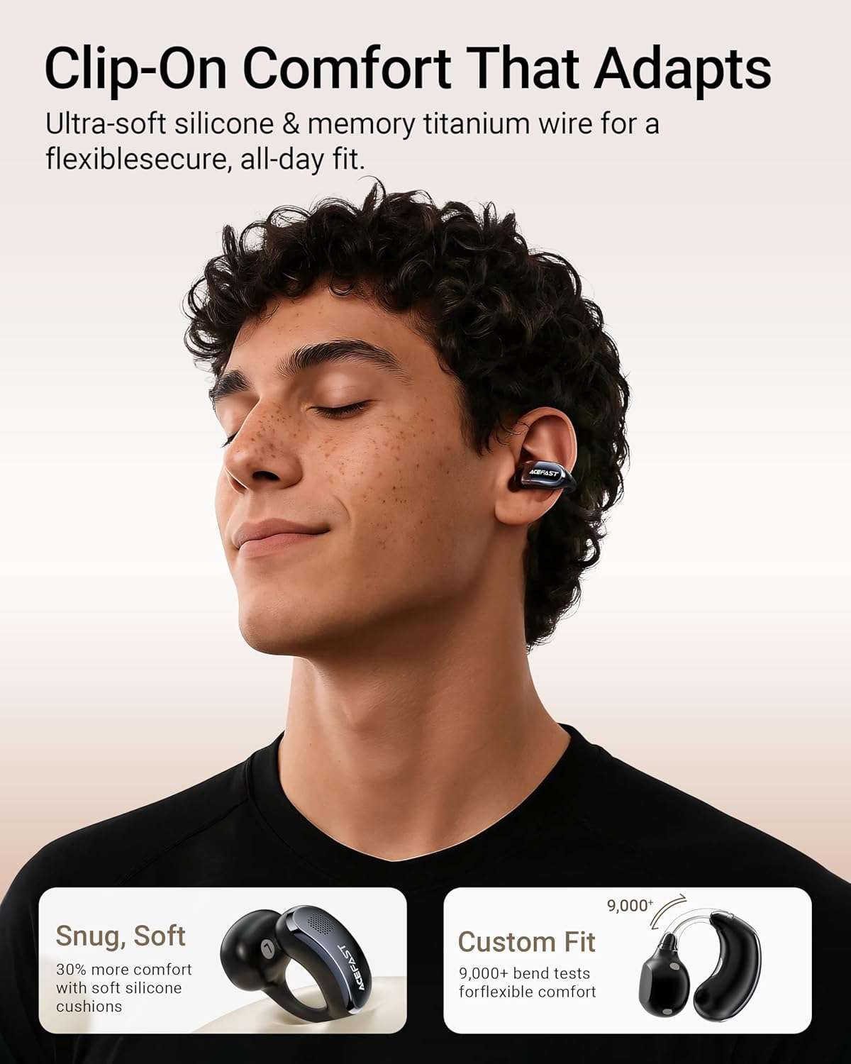 - Designed for Comfort and Durability: Comprising skin-friendly liquid silicone, the Aceclip Pro features a semi-arc design intricately crafted to provide a secure fit that adapitates gently to the ear’s shape. Durable titanium wire has been tested for over 9,000 bends, establishing its reliability during rigorous activities. These lightweight and breathable earbuds ensure a pressure-free experience that lasts all day without compromise on sound quality.