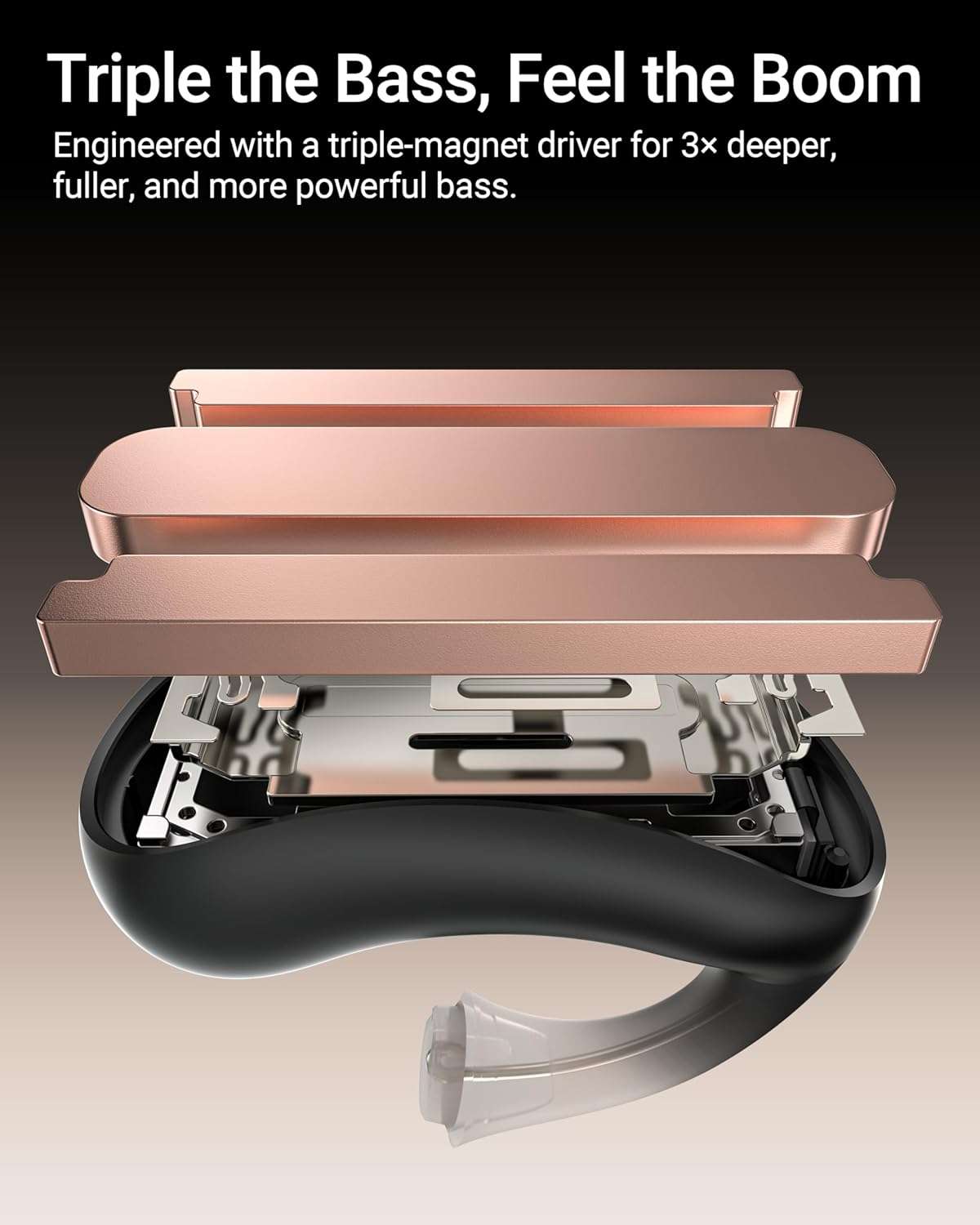 - Ergonomic open-ear design allows for an immersive audio experience while remaining aware of your surroundings