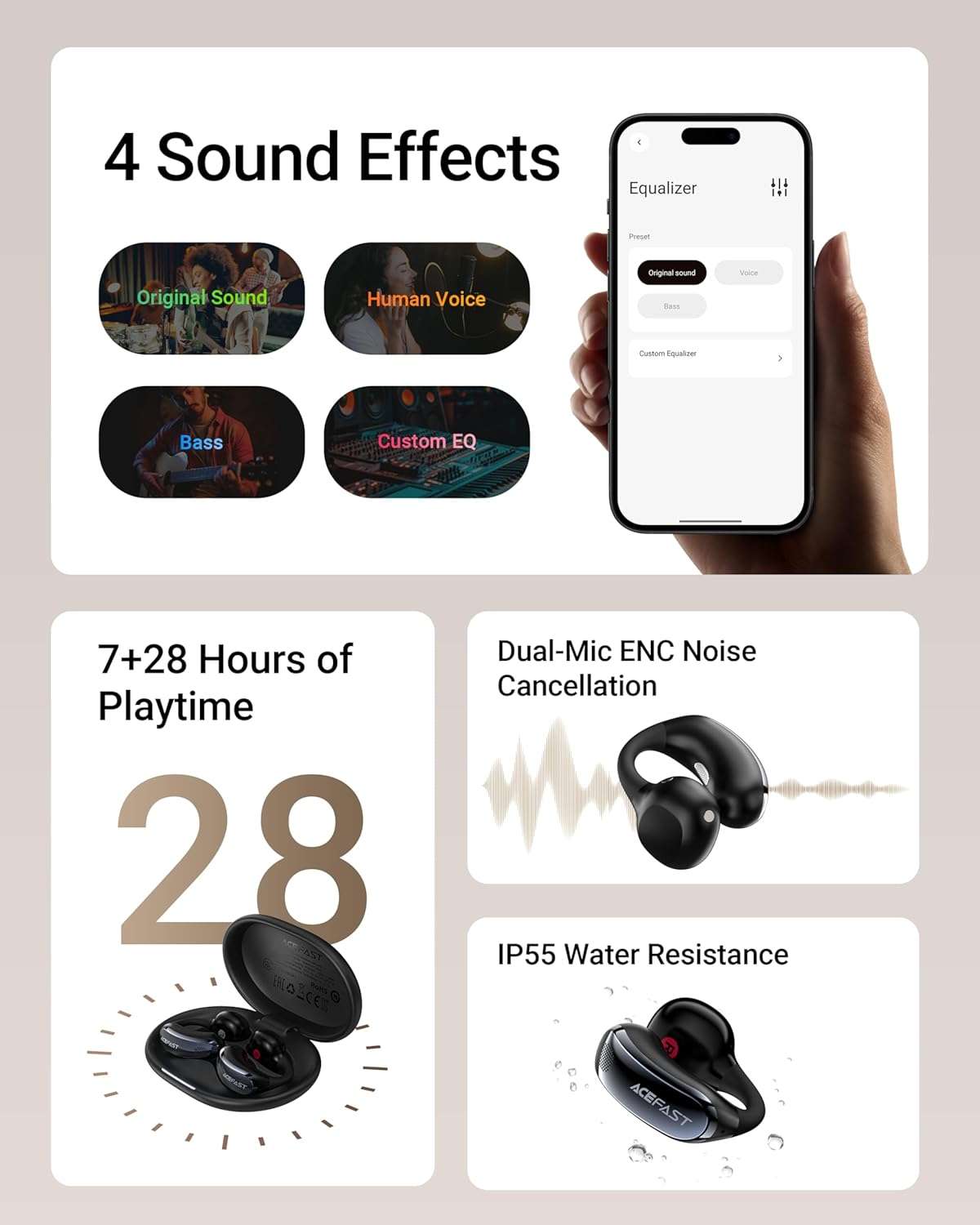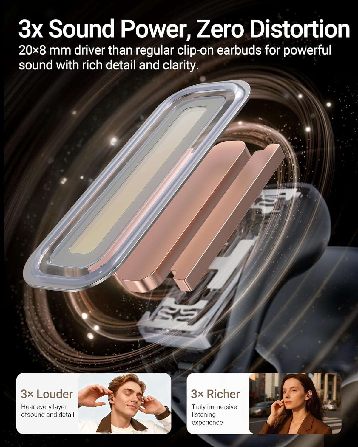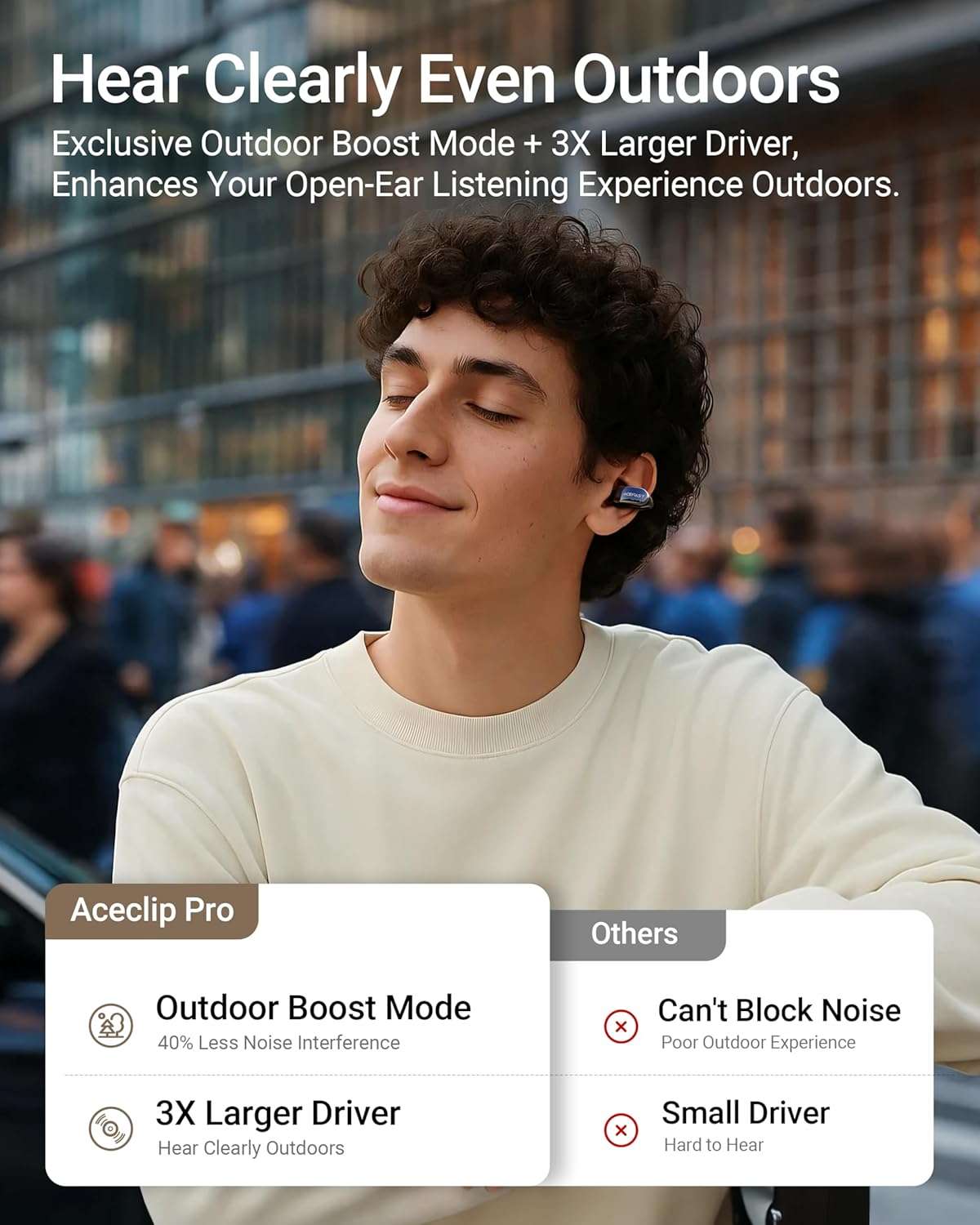 - Engineered for the Active Lifestyle: The ACEFAST Aceclip Pro Open-Ear Earbuds are the perfect companion for outdoor enthusiasts and daily commuters. With their innovative Outdoor Boost Mode, these wireless clip-on earbuds amplify sound clarity in challenging environments, such as windy streets and busy traffic. The advanced 3× larger drivers ensure you don’t miss a beat of your favorite tunes or important calls, making them ideal for cycling, exercising, or simply enjoying music on the go.