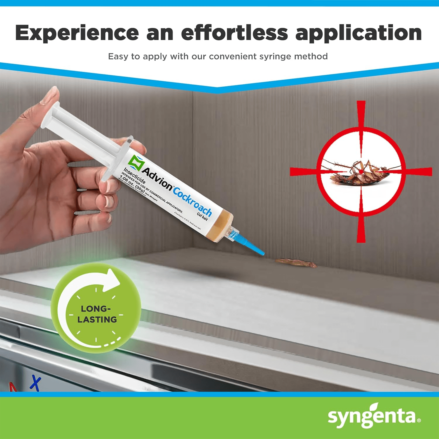 - EFFORTLESS APPLICATION: Designed with user convenience in mind, Advion Cockroach Gel Bait comes with a plunger and specially designed tips to allow for easy application in hard-to-reach areas like cracks and crevices where cockroaches are commonly found. Simply clean the areas and strategically place the gel to maximize its efficacy.
