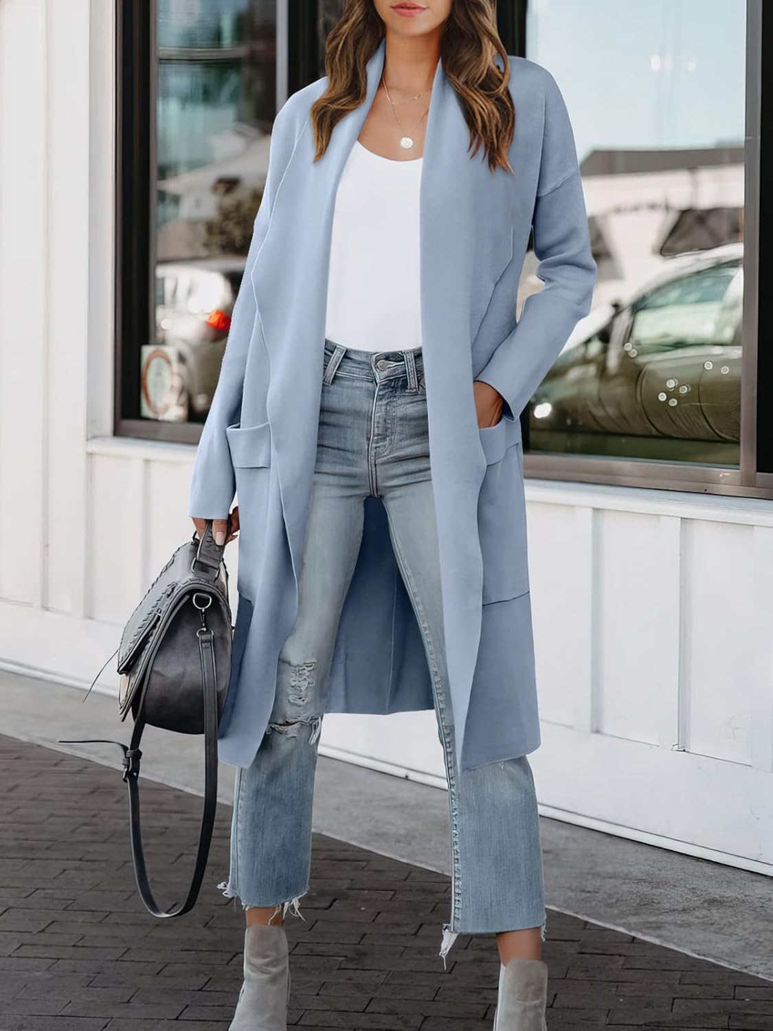 Crafted with a blend of high-quality materials, the cardigan ensures a soft touch against the skin while offering durable use. The spacious pockets provide functionality, allowing you to keep your essentials close at hand. Designed with long sleeves and an open front, this cardigan creates a flattering silhouette that complements any body type. Transition seamlessly from day to night with this must-have outerwear staple that embodies contemporary fashion sensibilities.