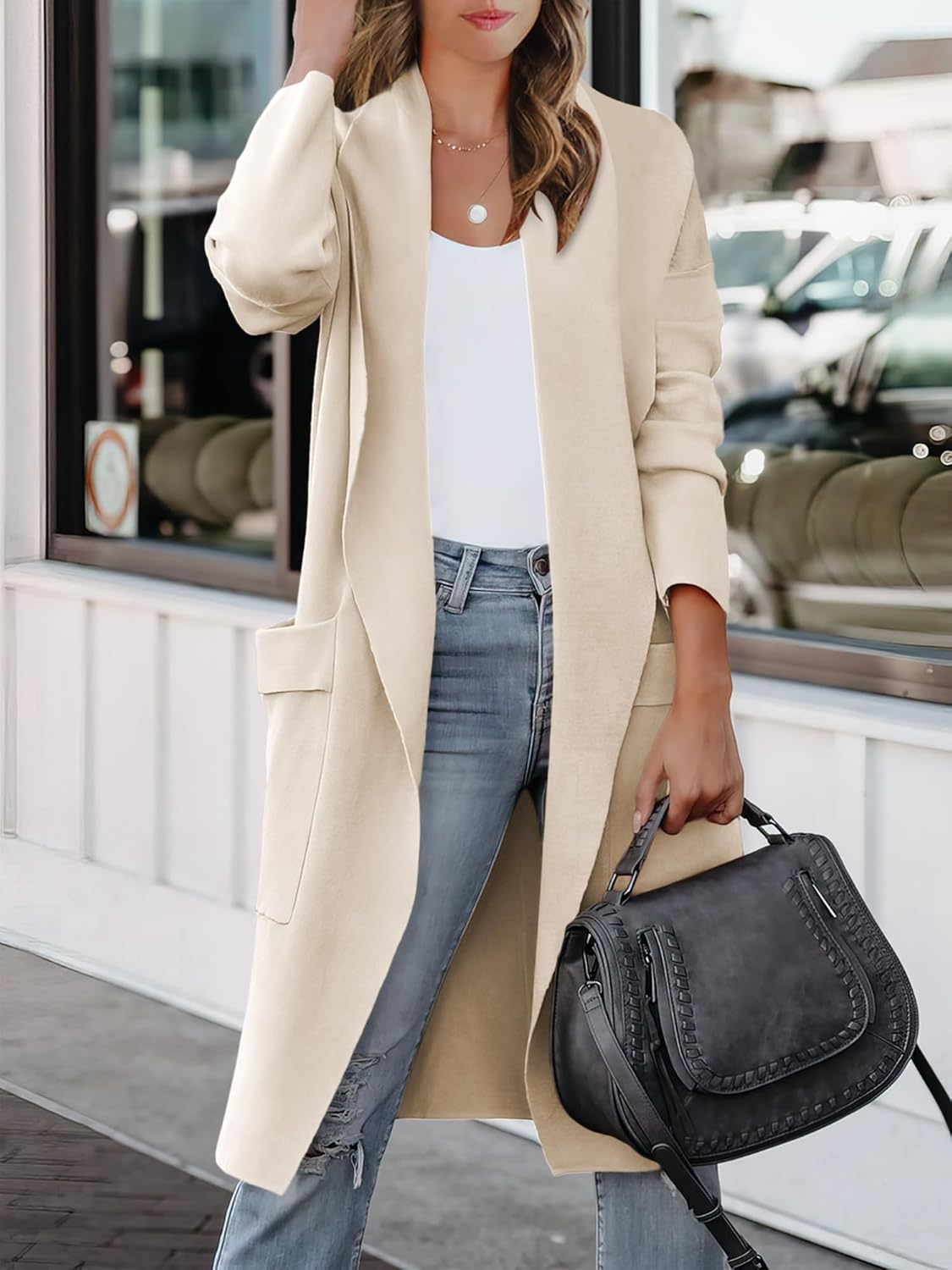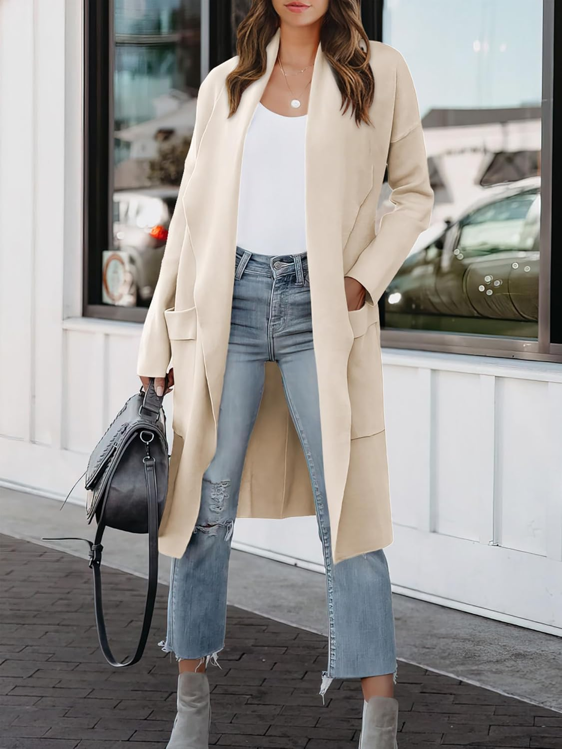 The ANRABESS Women’s Long Cardigan Sweater is the epitome of style and comfort, making it a must-have addition to your fall wardrobe. This casual oversized knit coatigan jacket effortlessly combines functionality with fashion, providing a versatile layering option for various occasions. Whether you are heading out for a casual brunch, an evening stroll, or simply relaxing at home, this cardigan offers the perfect blend of warmth and chic appeal. Its open-front design allows for easy layering over your favorite tops, while the long sleeves provide additional coverage, making it suitable for the cooler months.