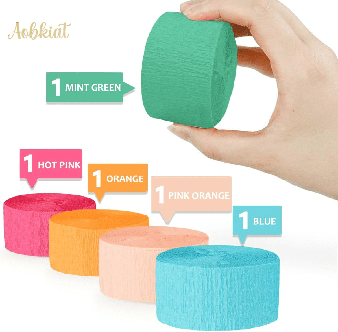 - Bright and vibrant – Our crepe streamers come in 5 different colors, hot pink, orange, blue, pink orange and mint green. A riot of colors, a total visual feast to your eyes. Suitable for many different occasions and holidays.