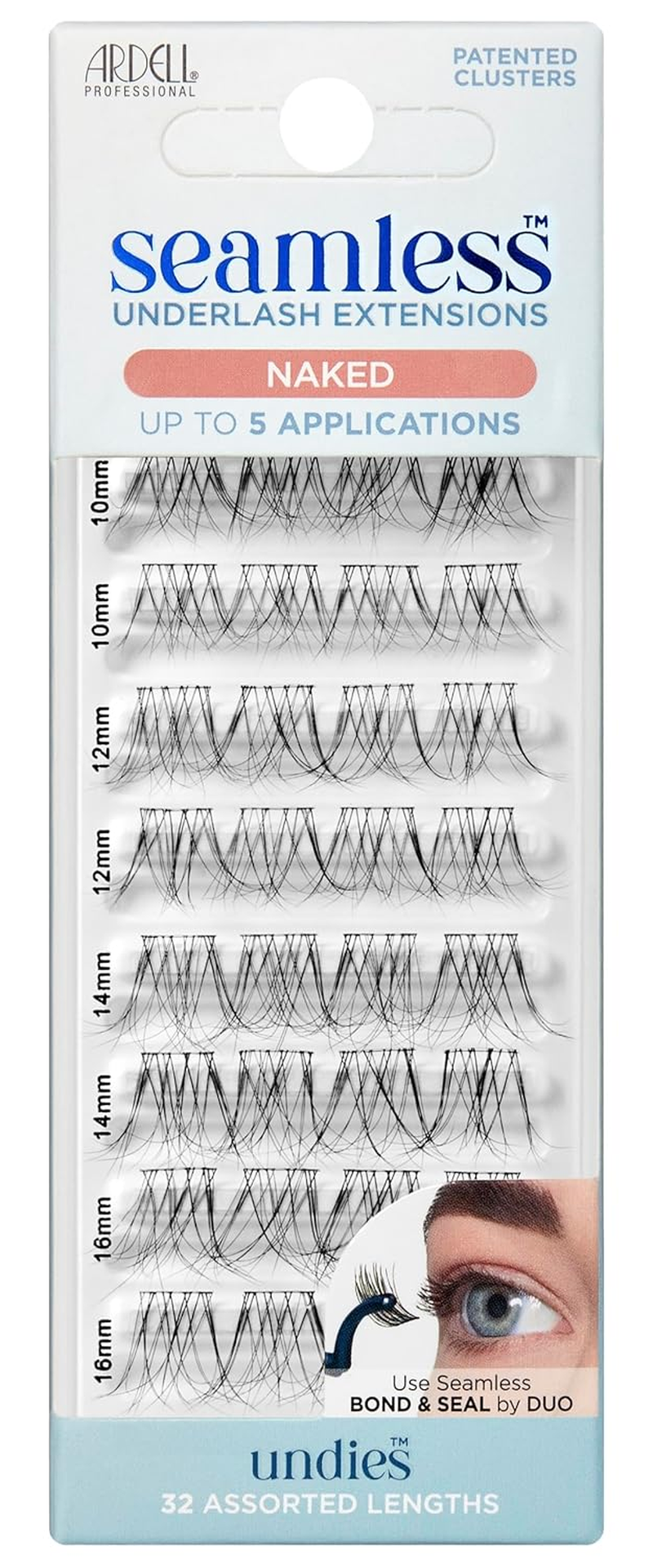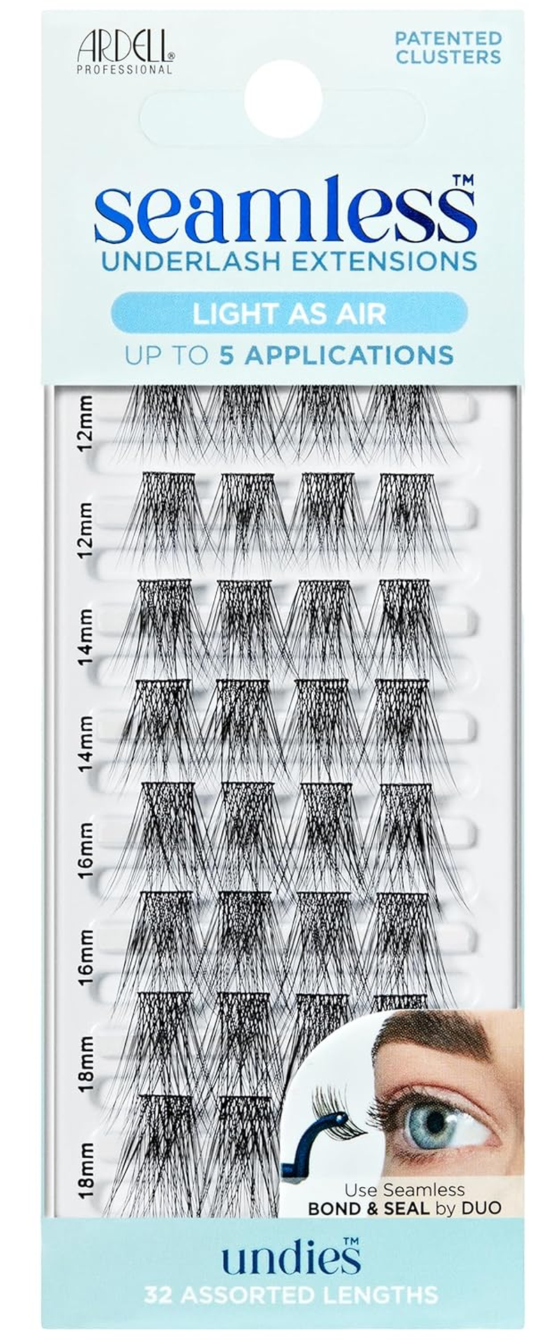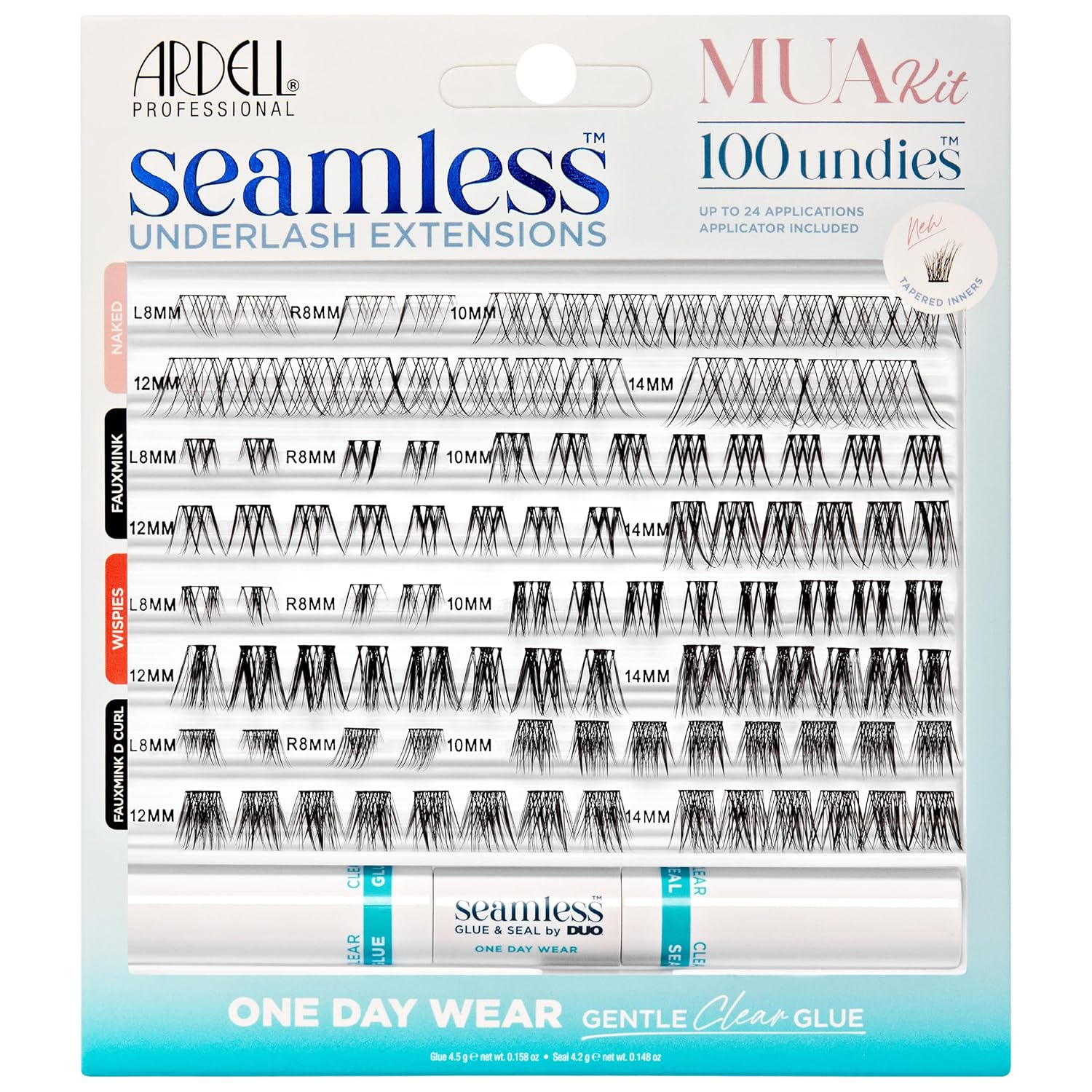 Introducing the Ardell Seamless Underlash Extensions in the Modern Wing style, designed to effortlessly enhance your natural beauty. These extensions feature a winged silhouette that enhances and elongates the eyes, presenting an alluring crisscross layering with bold, spiky volumes. This convenient kit includes 32 knot-free, patented clusters in various lengths, allowing for personalized and customizable lash looks. With easy application methods, you can achieve a professional finish from the comfort of your home.