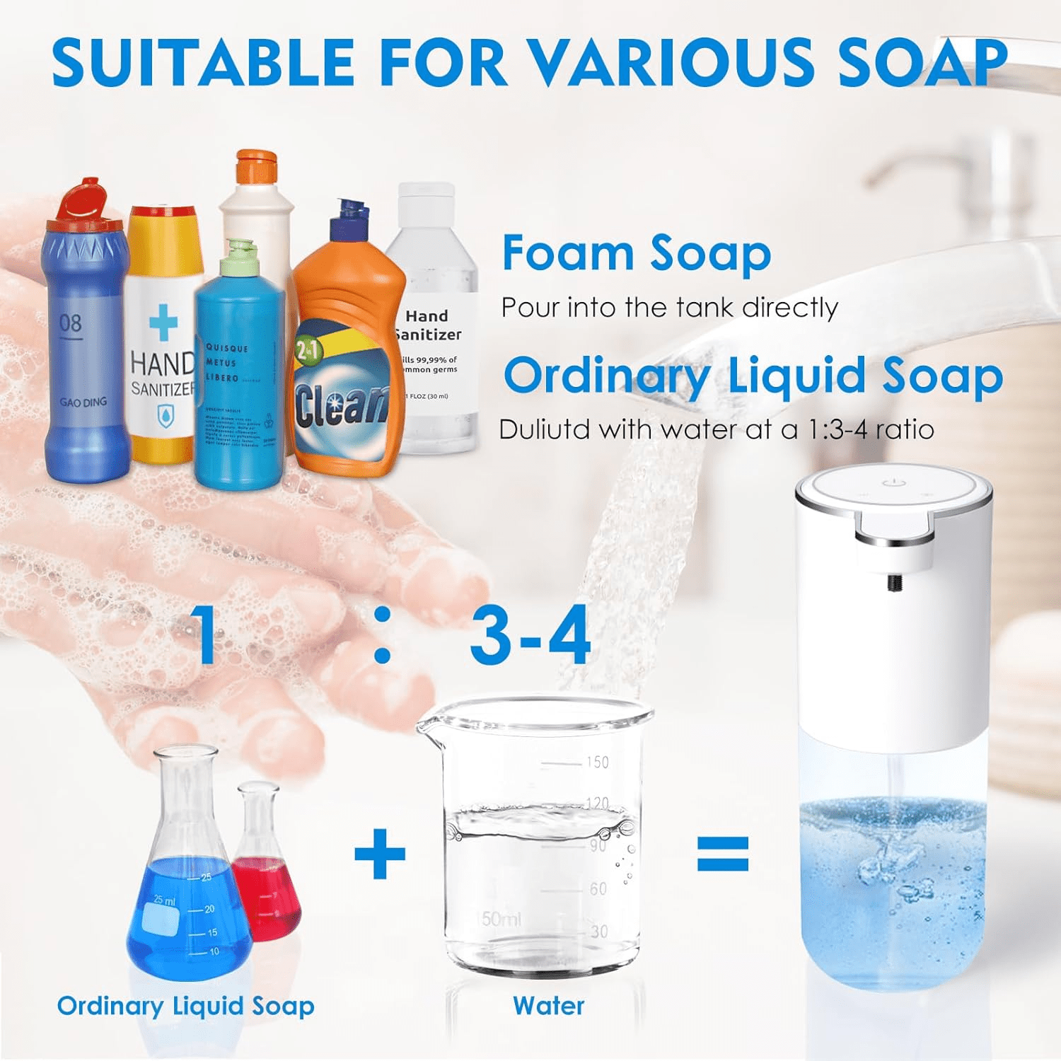- Our Automatic Foaming Soap Dispenser is designed to enhance hygiene and convenience in any setting. Utilizing advanced infrared technology, this touchless soap dispenser detects your hand from a distance, dispensing a perfectly measured amount of luxurious foam without the need for physical contact. This makes it an ideal solution for high-traffic areas such as bathrooms, kitchens, restaurants, and schools, streamlining the handwashing process while promoting cleanliness.