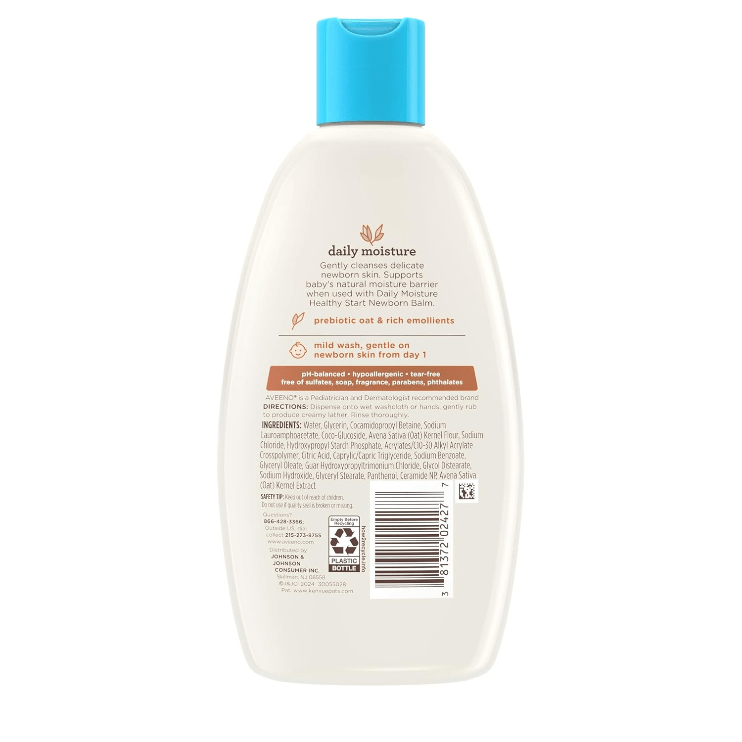 - This gentle, daily wash is enriched with rich emollients to nourish and hydrate your baby’s skin, making it an excellent complement to the Daily Moisture Healthy Start Newborn Balm from Aveeno Baby. The soothing formula replenishes your baby’s skin, ensuring comfort and hydration throughout the day. Its hypoallergenic, tear-free, and pH-balanced properties guarantee a mild experience, free from harmful additives.