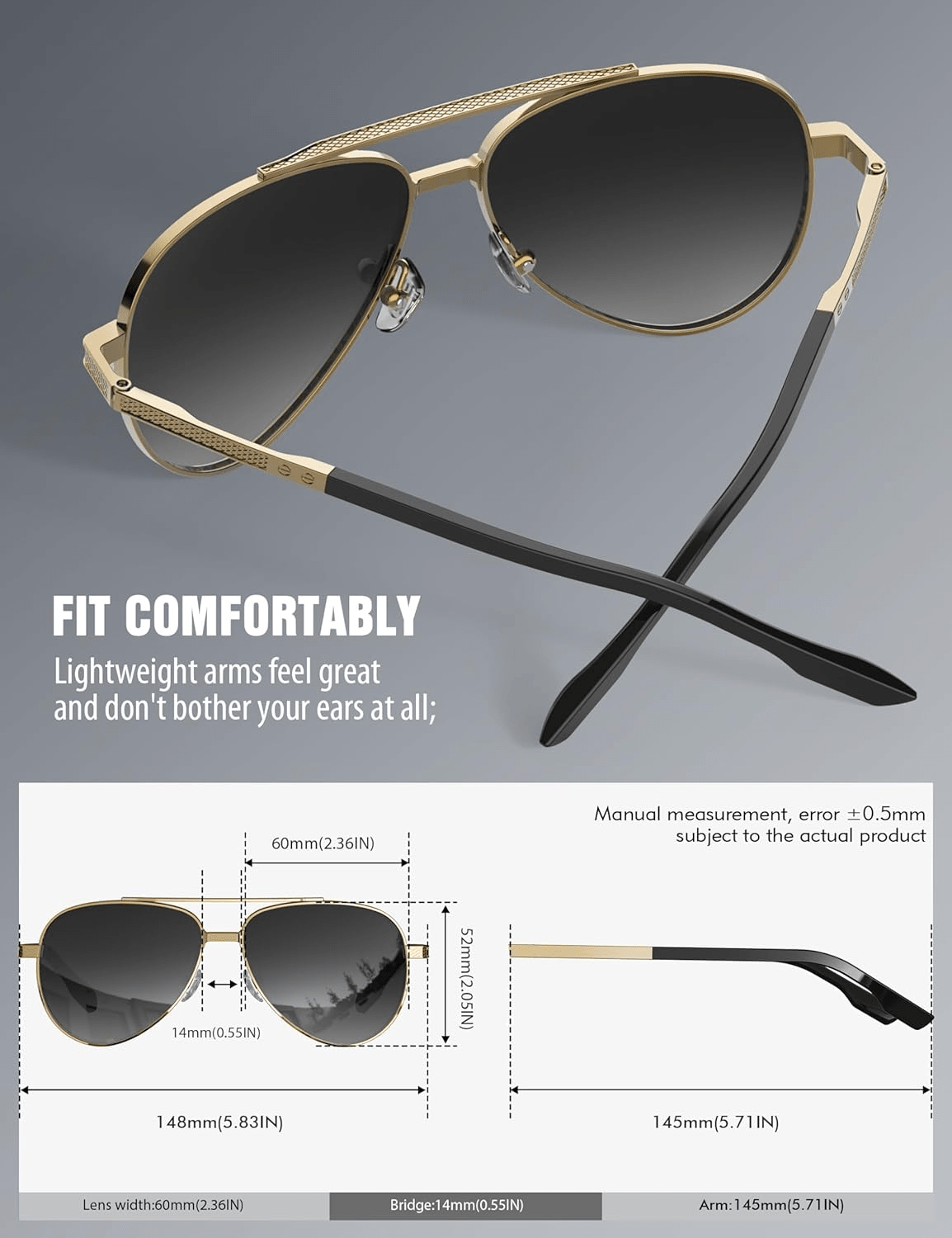 Aviator Sunglasses for Men Polarized Driving Trendy Retro Sun Glasses UV400 Protection