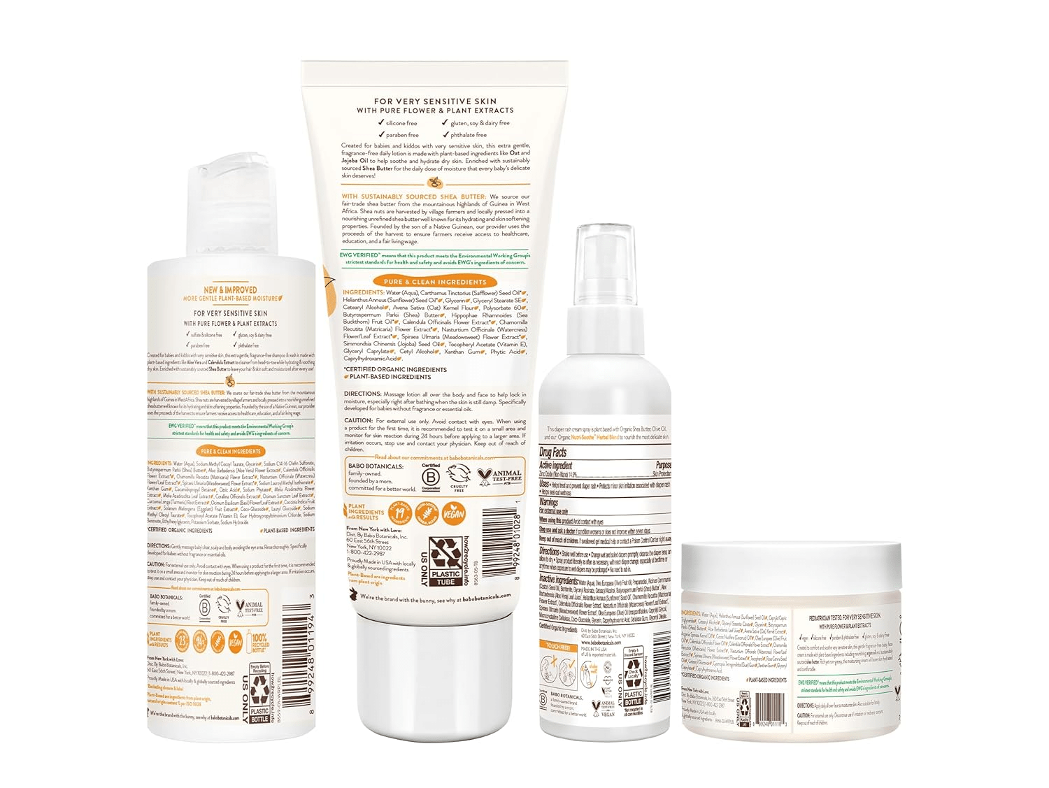 Babo Botanicals Baby Care Essentials Gift Set is specifically designed for the delicate skin of infants, ensuring optimal care without any added fragrance. This thoughtfully curated set features five essential products enriched with shea butter, known for its remarkable hydrating properties. Each item in the set serves a unique purpose, making it an ideal selection for bath time, skincare, and diaper care routines.
