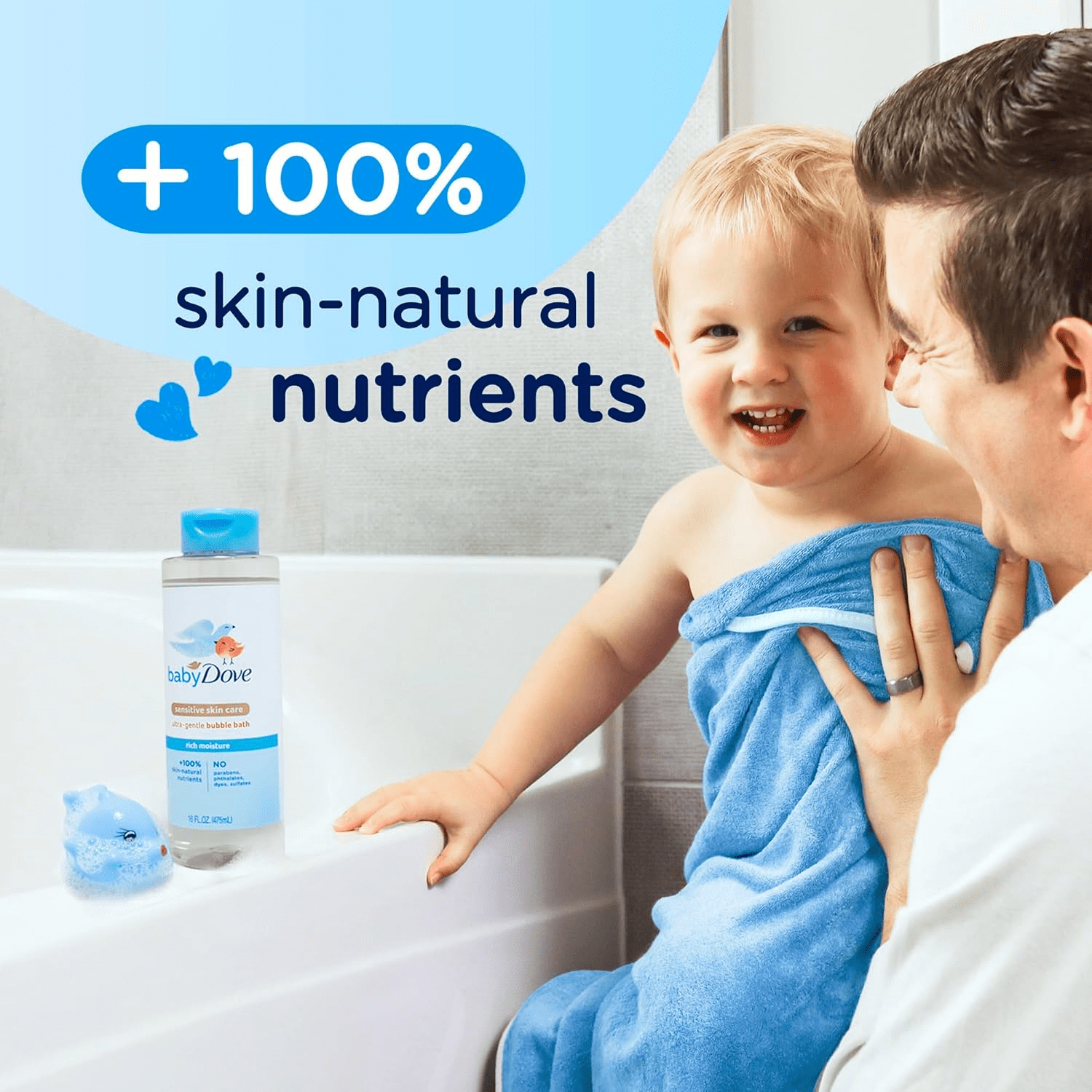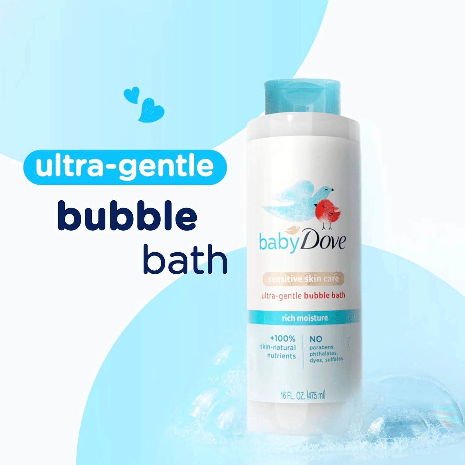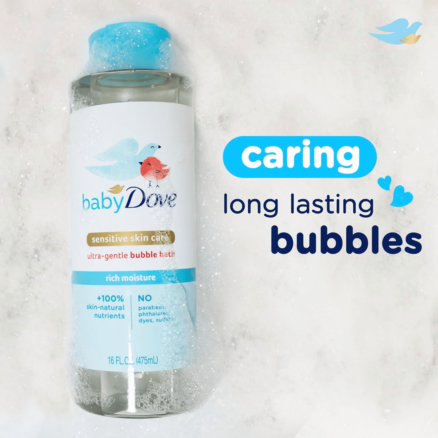 • ULTRA-GENTLE AND MOISTURIZING: Baby Dove Sensitive Skin Care Rich Moisture Bubble Bath leaves delicate skin feeling cared-for with every moisturizing bath time.