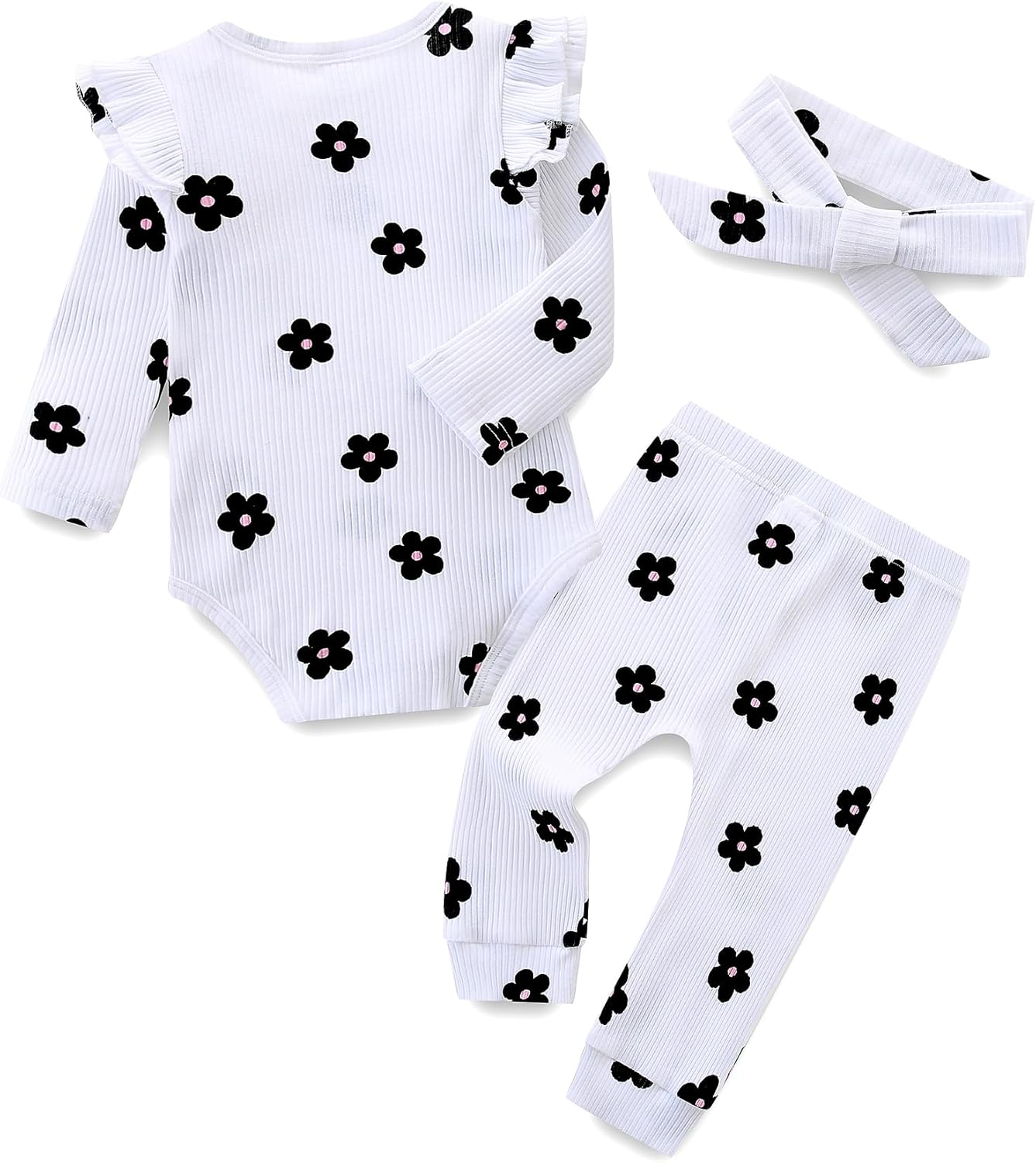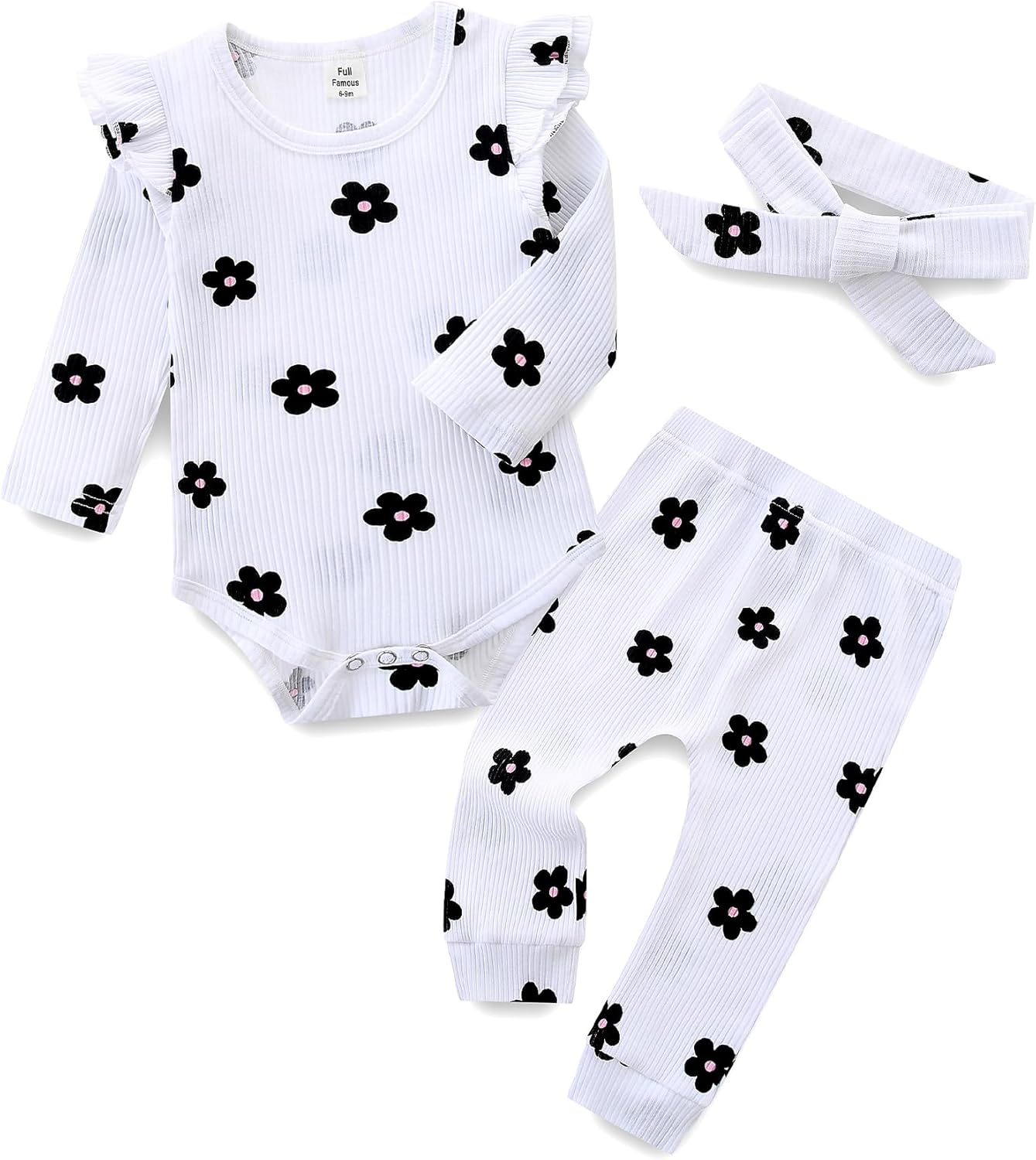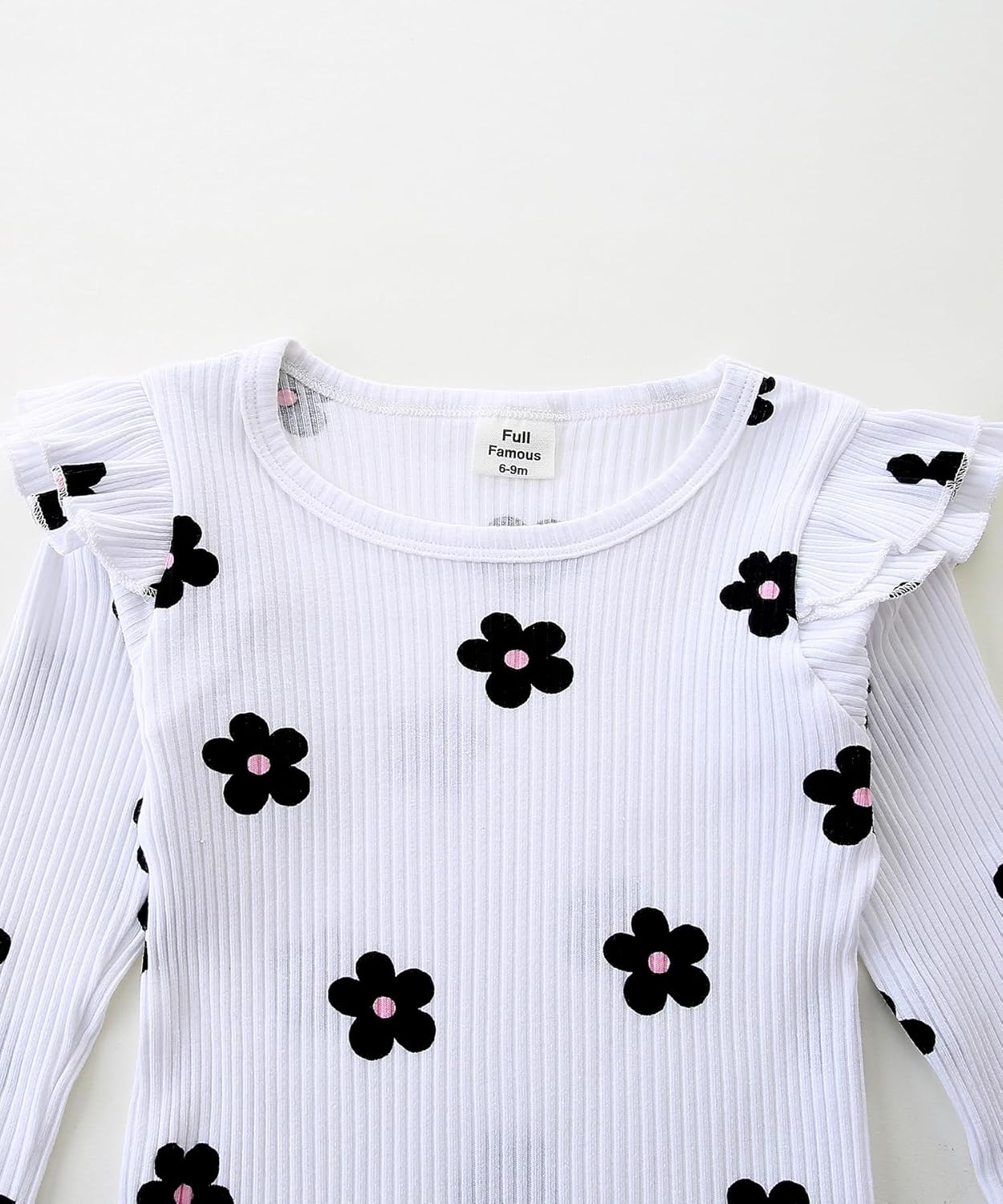 Fullfamous Baby Girl’s 3Pc Rib Frill Long Sleeve Romper and Pant Set is the ideal outfit for your little one, designed for style and comfort. Crafted from soft, breathable materials, this adorable set features a charming white flower pattern that is perfect for any occasion. Whether it’s a playdate at the park or a family gathering, your baby girl will be dressed to impress in this fashionable ensemble. The long-sleeve romper provides warmth while the lightweight fabric ensures comfort throughout the day, making it a versatile choice for layering or wearing on its own.