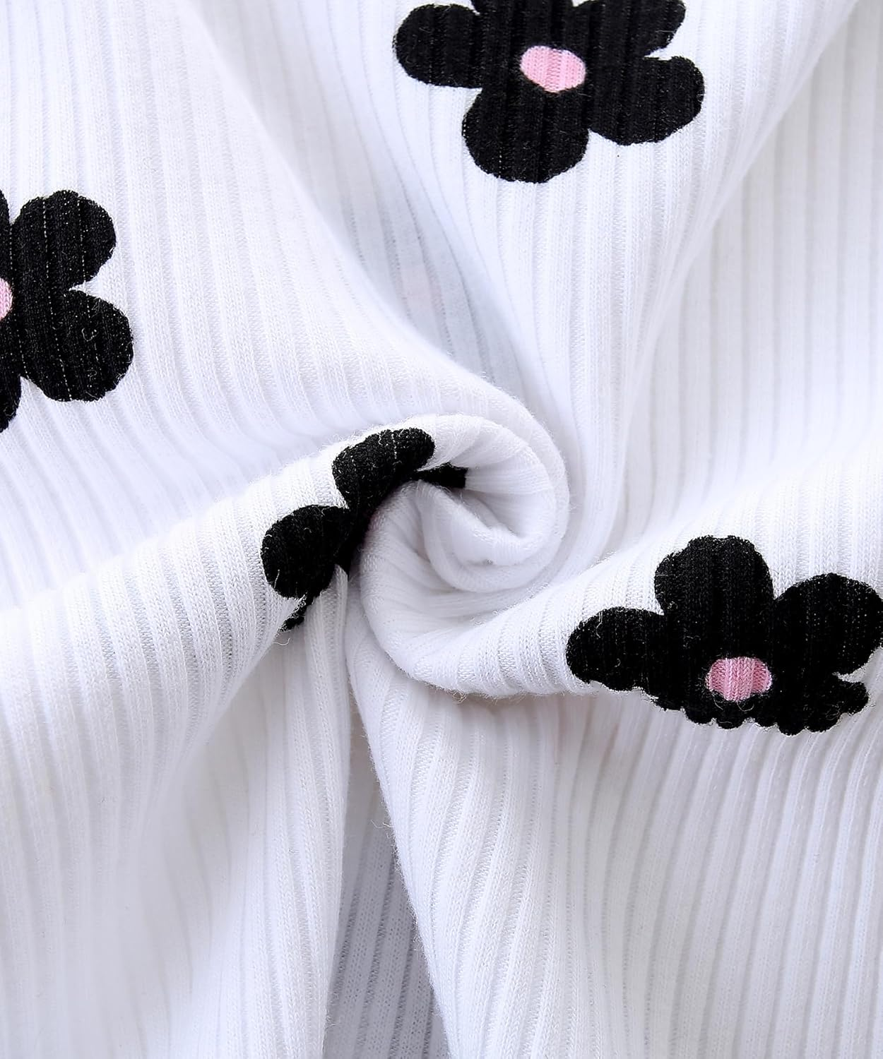 This delightful set includes a rib frill romper and matching pants, providing a complete look that is easy to mix and match with other items in your toddler’s wardrobe. The thoughtful design accounts for ease of movement, allowing your little one to crawl, play, and explore with confidence. With a variety of sizes available, this outfit is a fantastic addition for babies aged 6-9 months who are ready to step out in style.