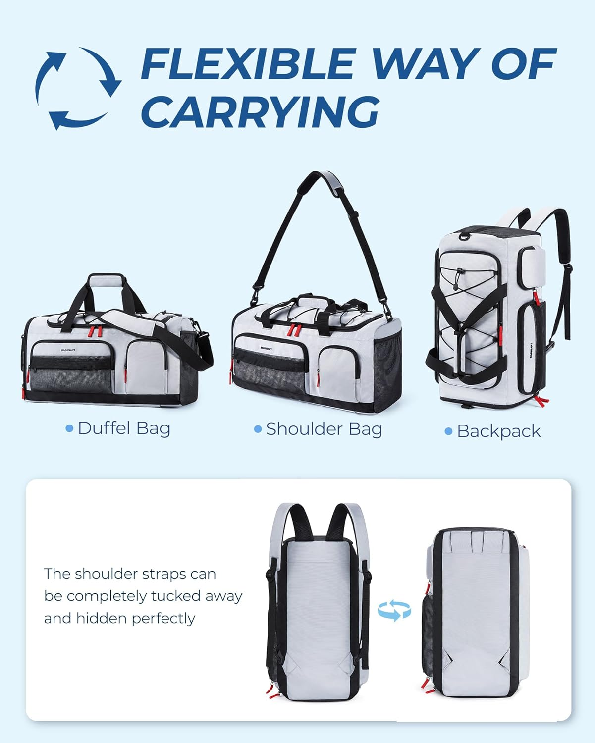 - Adaptable Design: Embrace versatility with the three-in-one design of this gym bag. It can easily transition from a backpack to a duffle bag or a shoulder bag, allowing you to choose the carrying style that best suits your needs. The adjustable shoulder straps are designed to remain hidden when not in use, enhancing the bag’s sleek appearance and facilitating seamless transitions between styles.