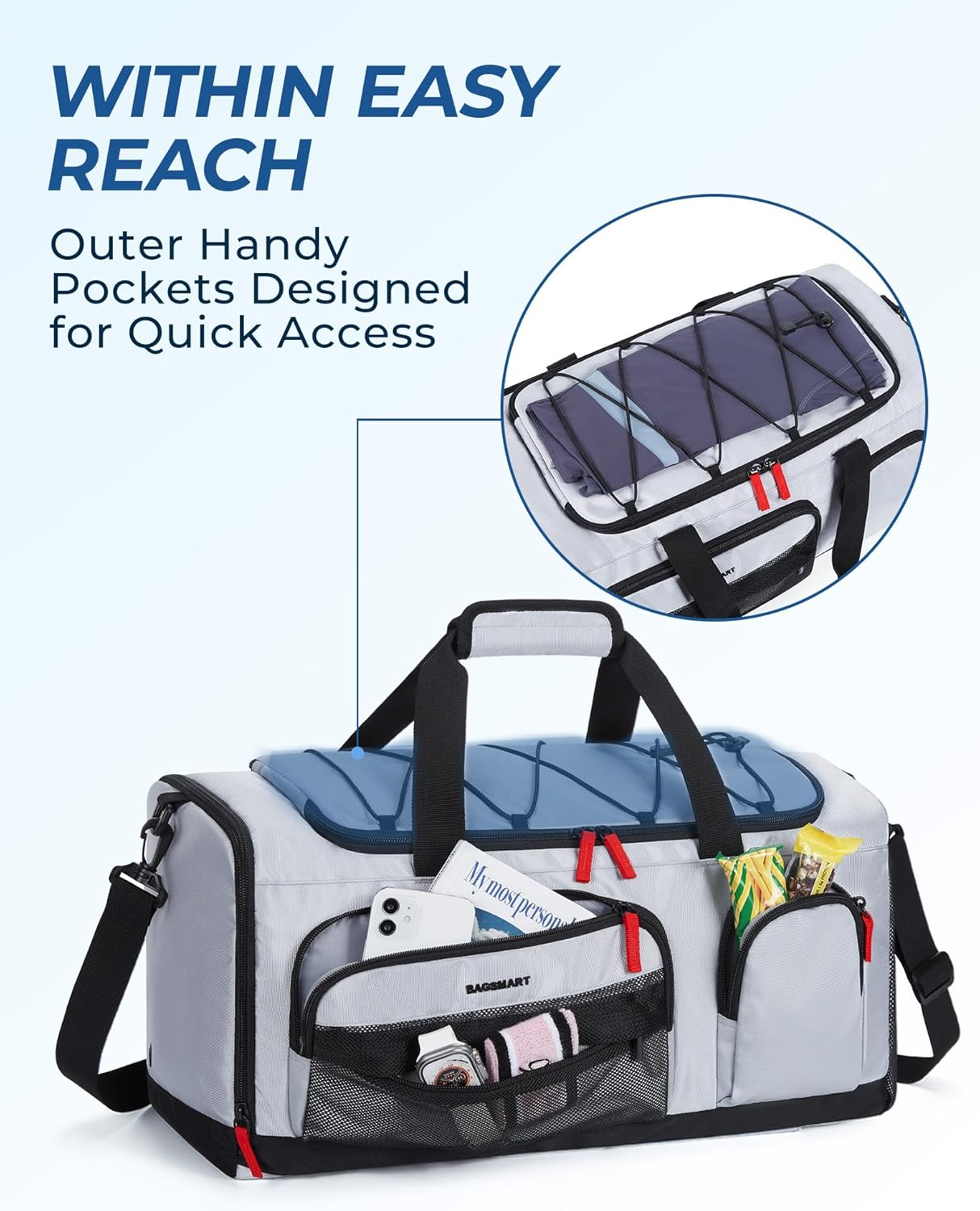 - Optimal Comfort: Designed with the user in mind, the BAGSMART Gym Bag focuses on comfort without compromising on style. It is equipped with wider handles, double zippers for effortless access to your belongings, and thickened shoulder pads that add extra support during prolonged use. The water-resistant fabric protects your possessions and enhances durability, ensuring that this bag can withstand rigorous use.