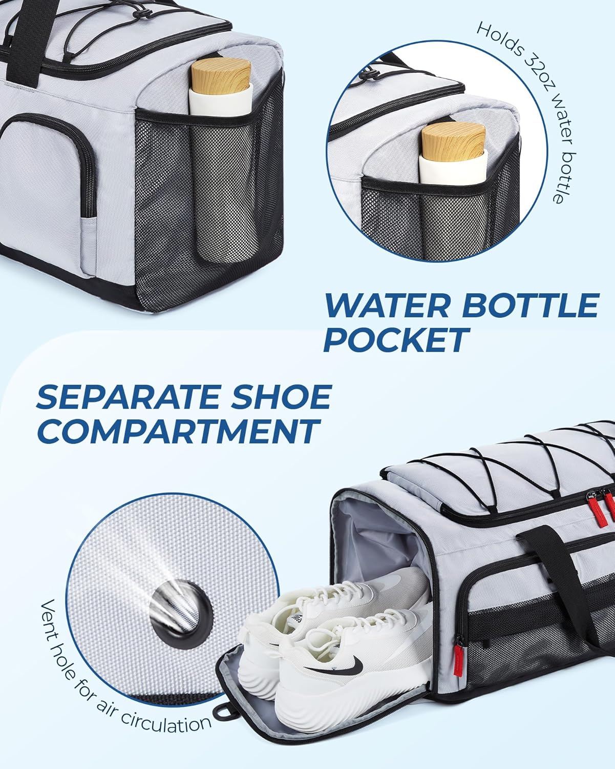- Smart Functionality: This duffle bag features practical pockets, including a specialized shoe compartment for improved air circulation, ensuring freshness after your workouts. It also includes a secure pocket for a 32oz water bottle, making hydration convenient while you exercise or travel. Experience the ease of organized storage with this thoughtfully designed bag.