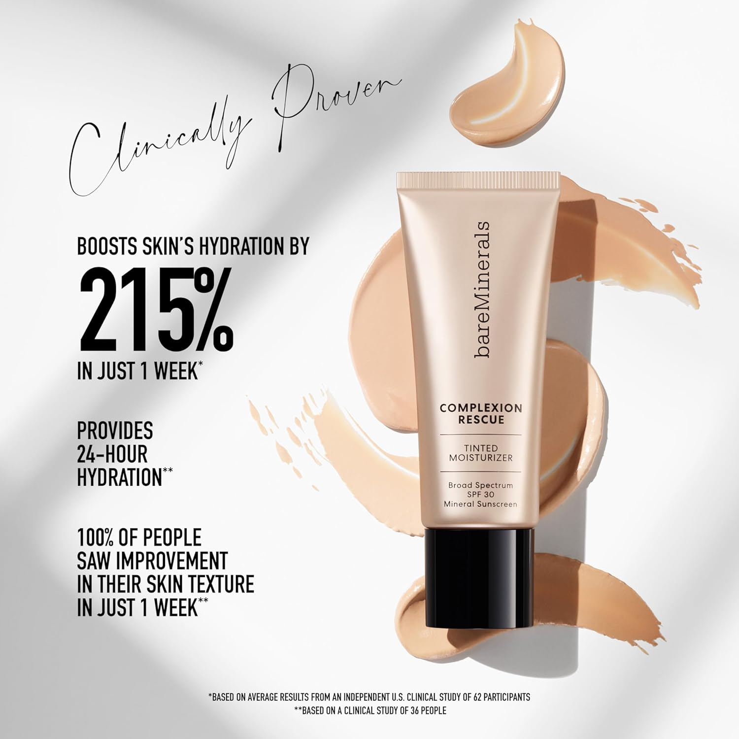 The Bareminerals Complexion Rescue Tinted Moisturizer is an innovative combination of skincare and makeup designed to enhance and protect your skin with every application. Formulated with hydrating vegan ingredients and enriched with hyaluronic acid, this tinted moisturizer delivers sheer-to-light coverage that leaves your complexion looking dewy and naturally radiant. Ideal for daily wear, it provides a subtle hint of color while offering broad-spectrum SPF 30 protection against harmful UV rays, making it an essential addition to your skincare routine.