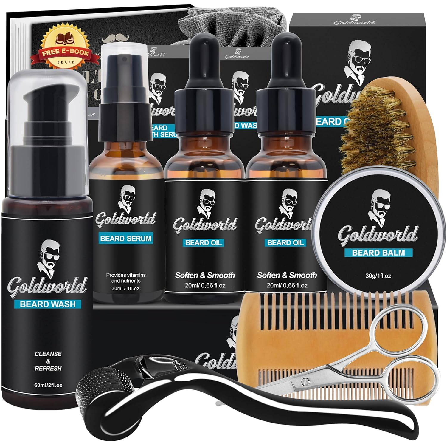- 【A Complete Beard Grooming Solution】: The GoldWorld Beard Grooming Kit is the ultimate all-in-one set designed for the modern man who values personal grooming. This comprehensive kit includes two packs of premium beard oil and serum crafted from pure, high-quality ingredients, ensuring that your beard receives the nourishment it deserves without any unnecessary additives. Perfectly suited as a unique and thoughtful gift for fathers, husbands, boyfriends, and teens on occasions like Christmas, birthdays, and Valentine’s Day, this kit embodies versatility and practicality for anyone looking to elevate their grooming routine.