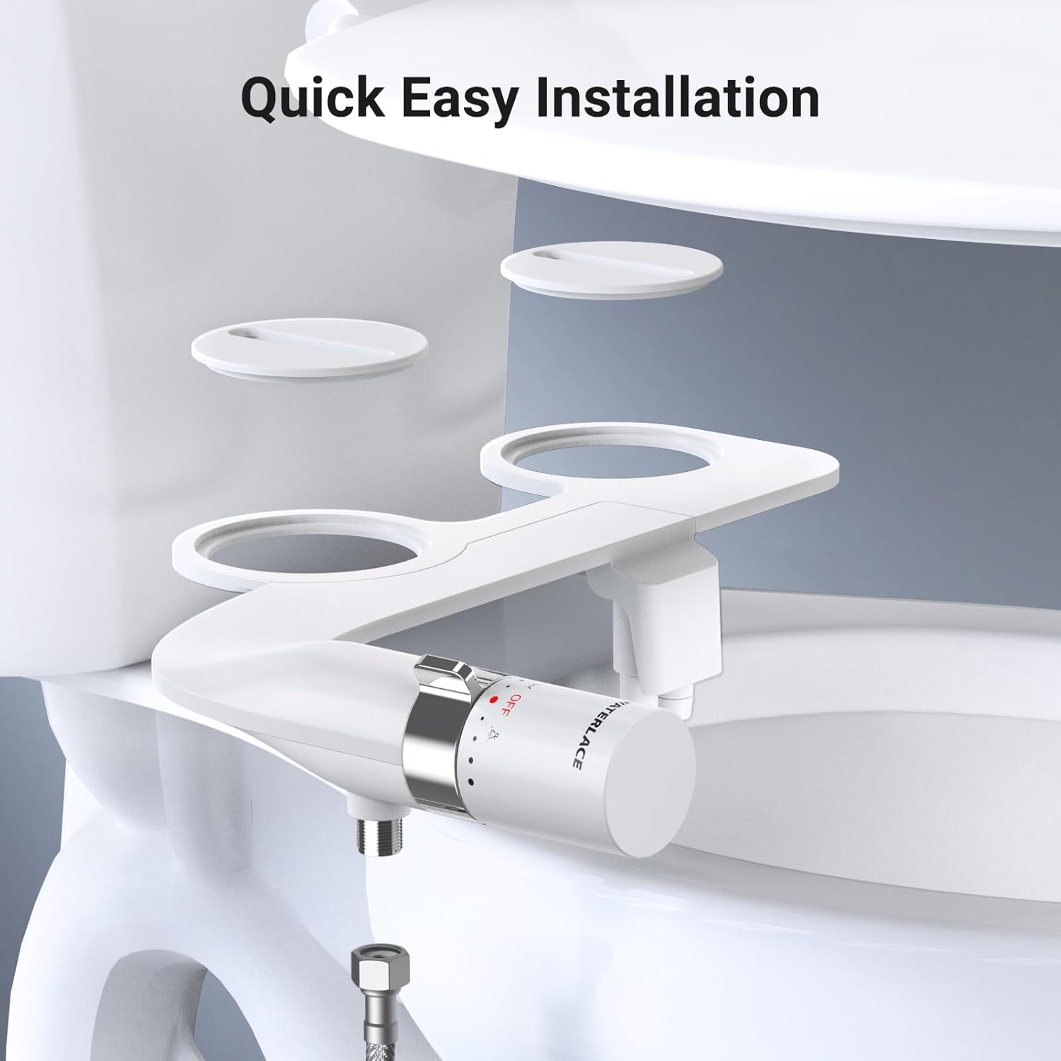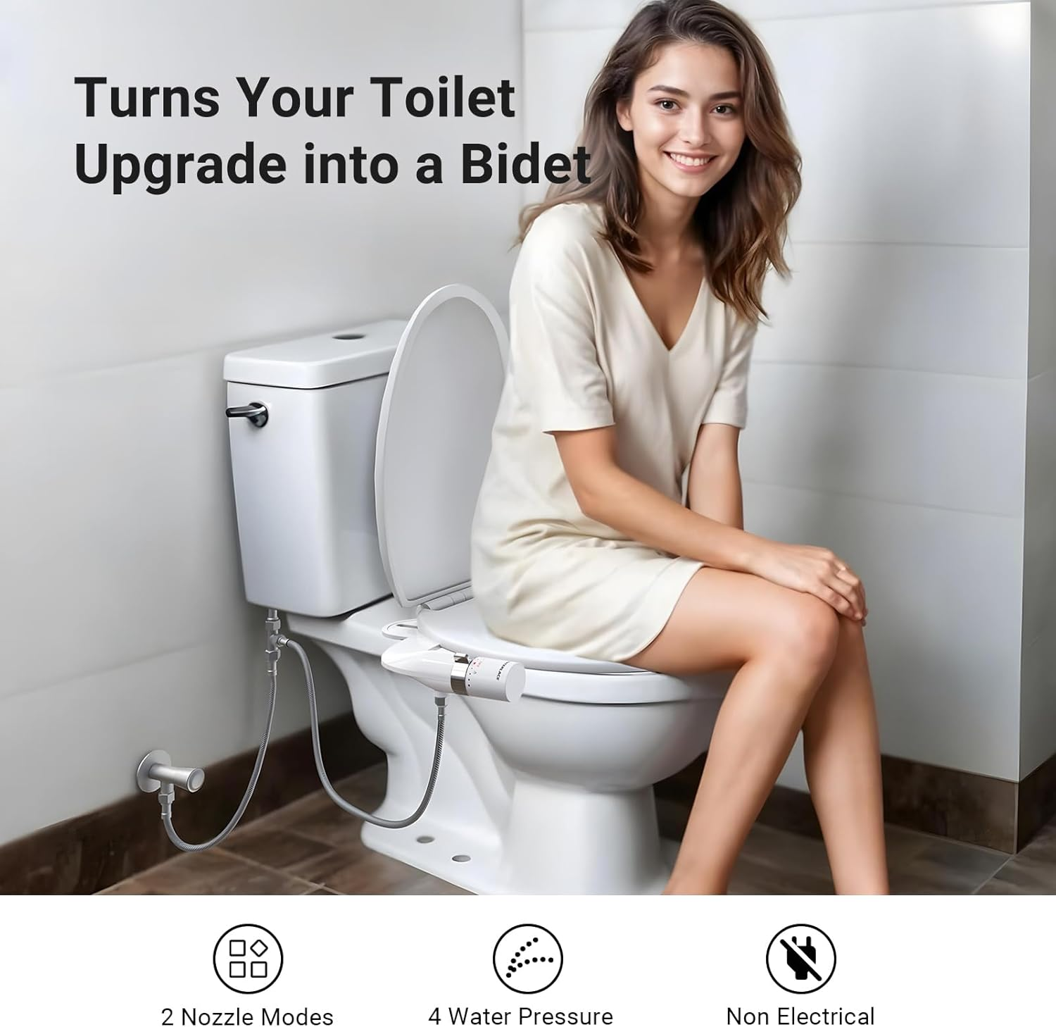 - 【Dual Nozzles with Adjustable Water Pressure】Our non-electric bidet attachment for toilet offers a choice between two types of cleaning: rear wash or feminine wash. With a simple twist of the knob, you can adjust the spray from soft to strong, providing a gentle and hygienic cleaning experience with naturally soothing water. After each use, you will feel refreshed and shower clean.