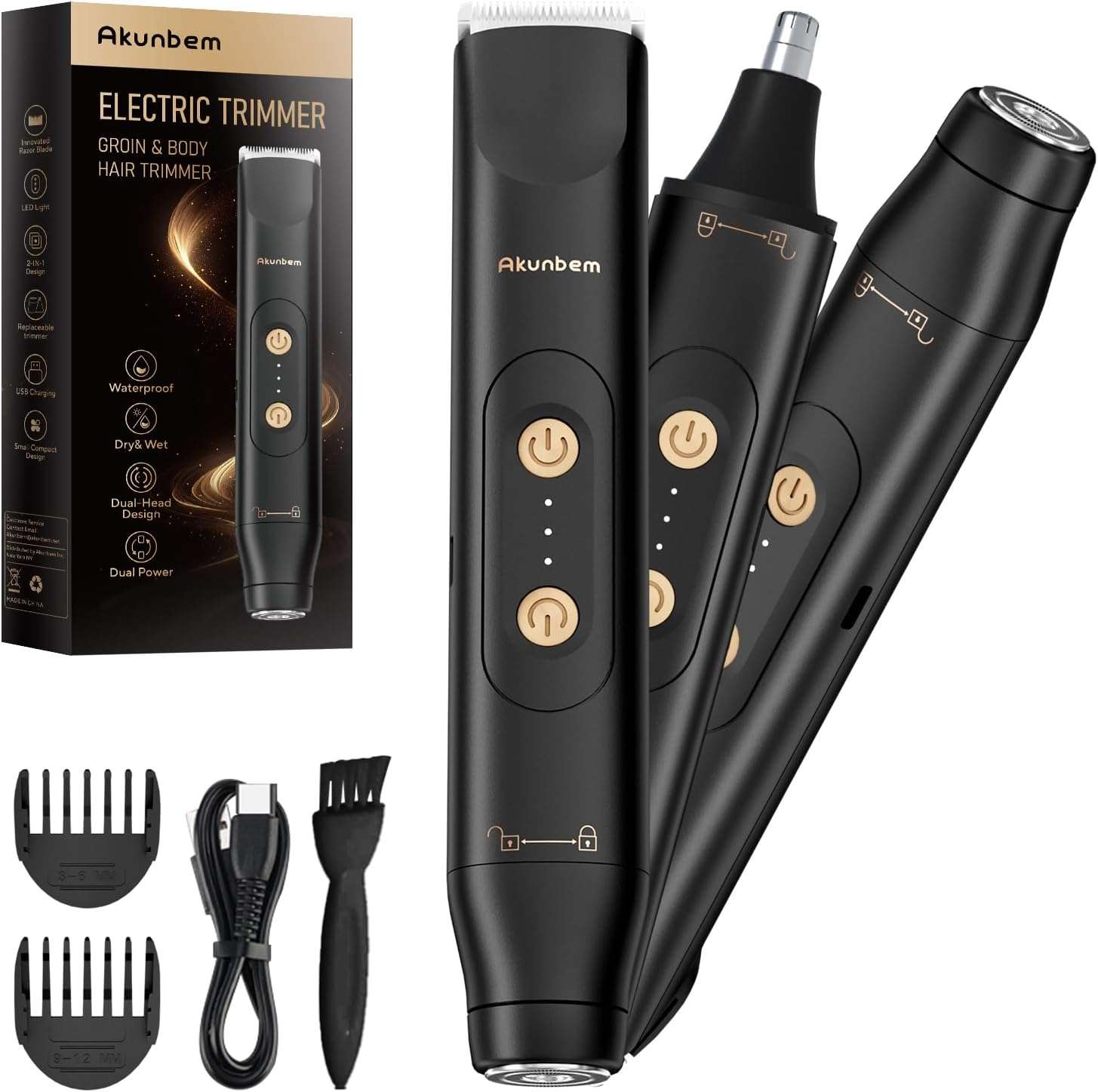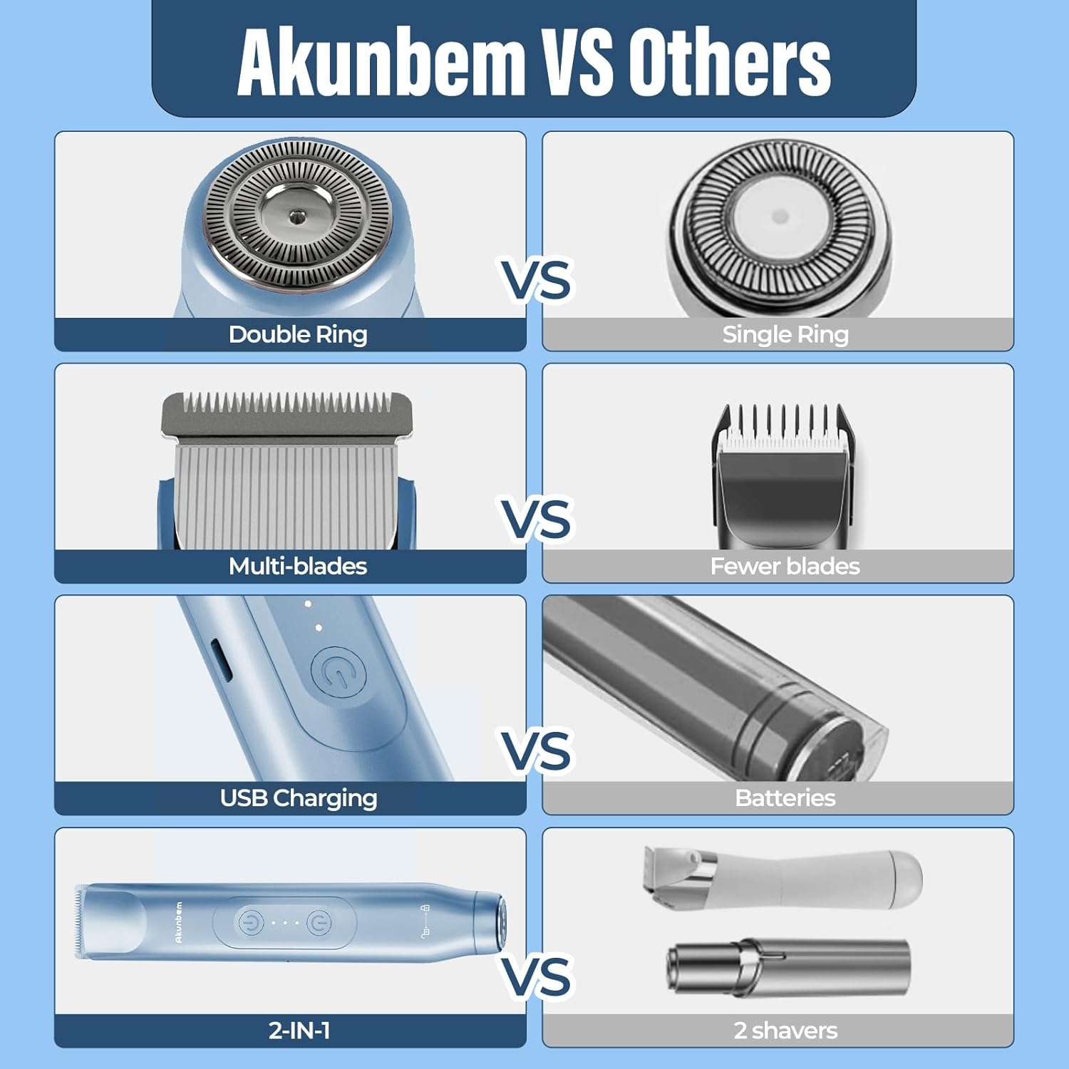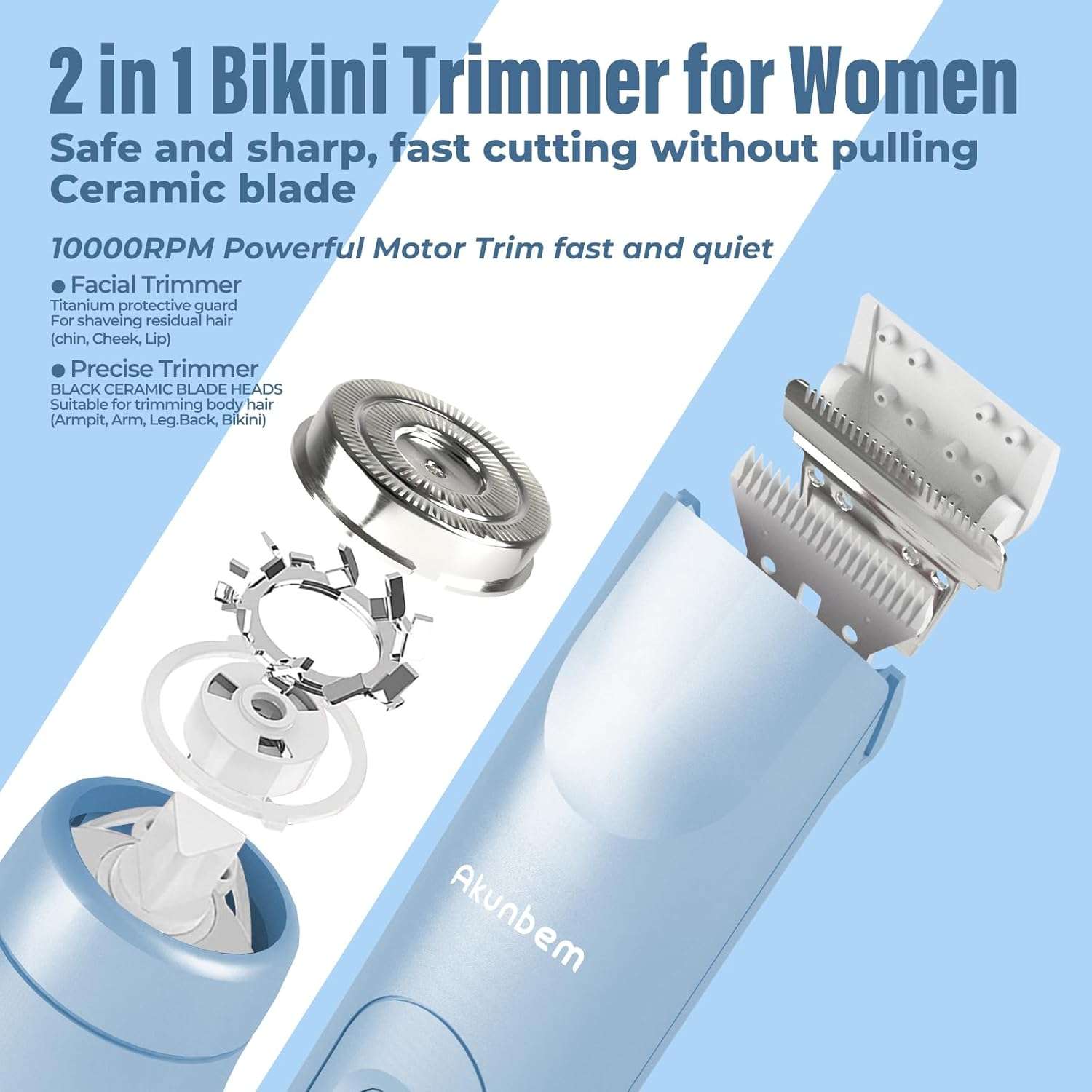 - Versatile Grooming Solution: The Akunbem Bikini Trimmer for Women features a unique dual head design that seamlessly combines the functionality of body and facial shaving in a single device. This innovative design eliminates the hassle of frequently changing cutter heads while ensuring precision and effectiveness in removing hair from various areas, including the face, body, and sensitive regions.