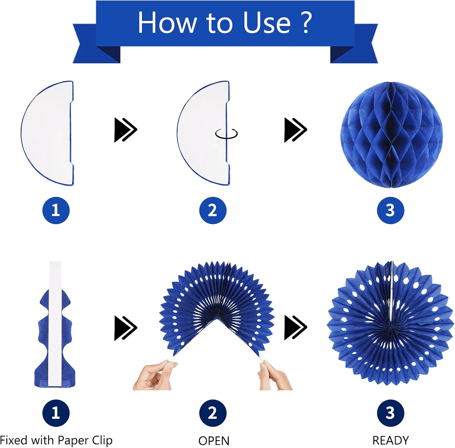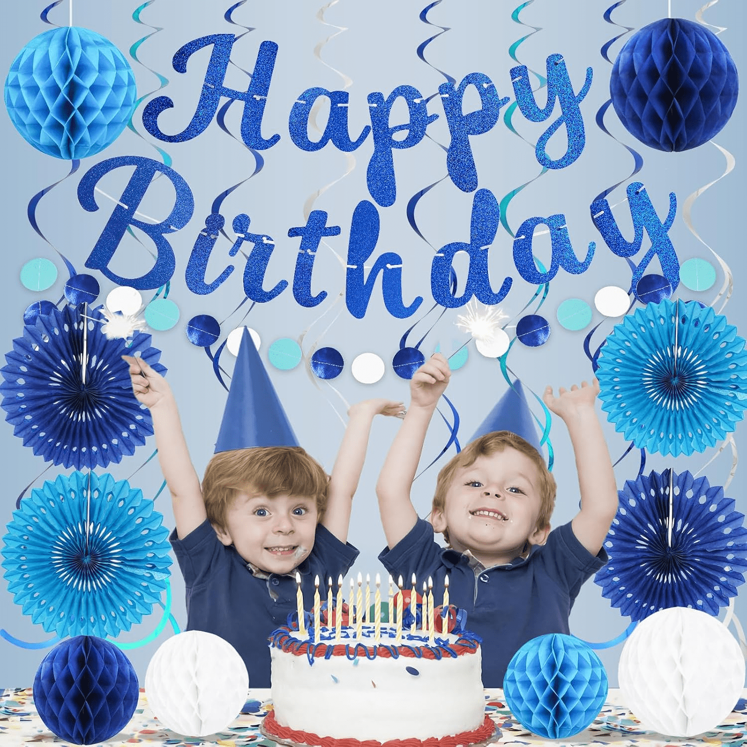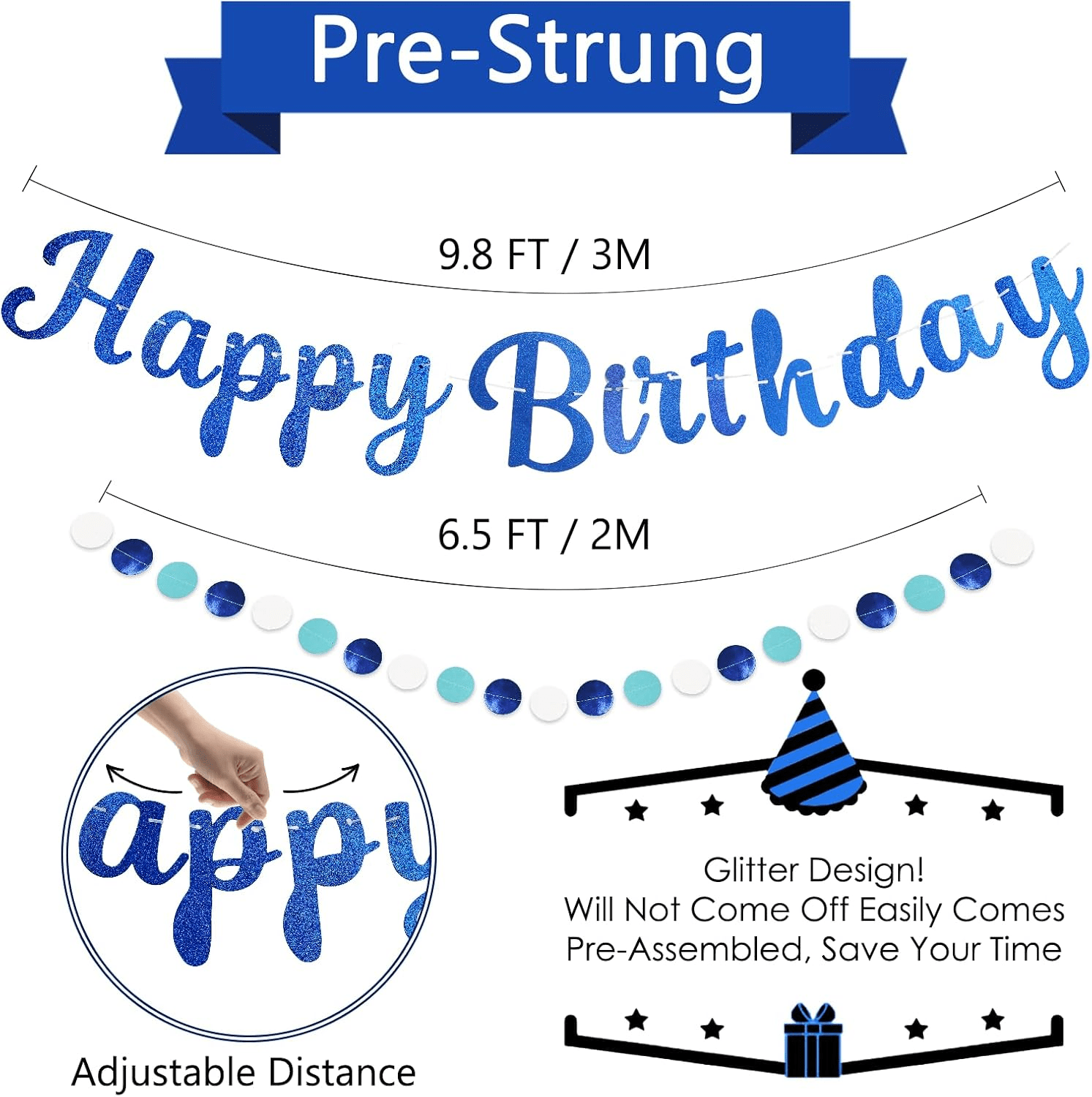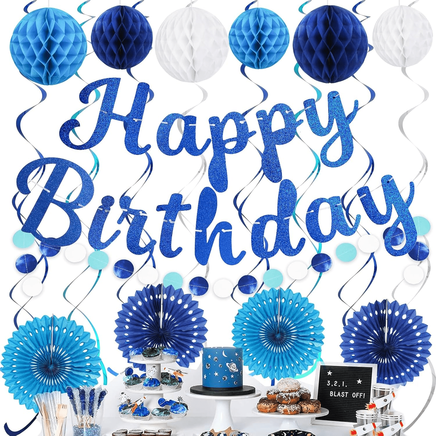 - 𝐏𝐀𝐂𝐊𝐀𝐆𝐈𝐍𝐆 𝐋𝐈𝐒𝐓 – 1 x Pre-Strung happy birthday banner, 1 x circle dot garland, 6 x honeycomb balls, 4 x paper fans, 8 x hanging swirls streamers.