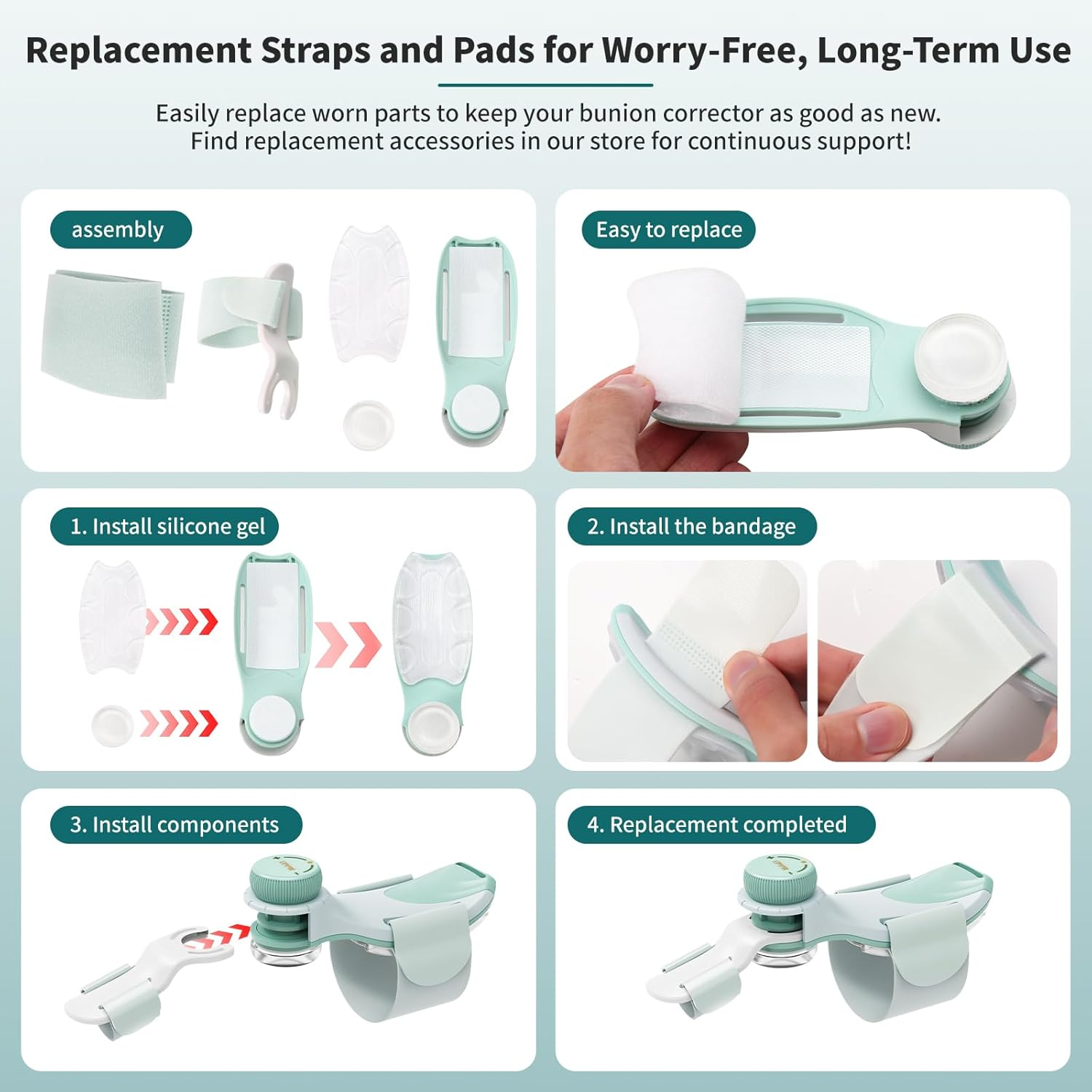 - Comfortable & Breathable Toe Brace Design:Soft silicone pads reduce pressure on bunion areas, while breathable straps ensure comfort all night. A gentle and effective bunion corrector for women. Comes with extra replacement straps, so you can always keep your bunion fix device fresh, clean, and secure.