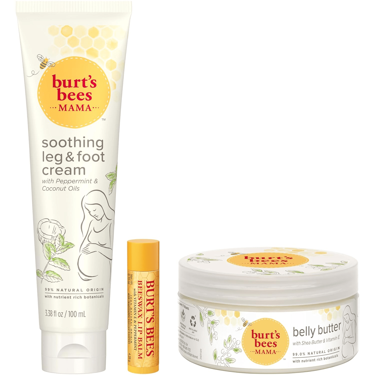 - GIFTS FOR MOM: The Burt’s Bees Pregnancy Essentials Gift Set is an ideal pampering collection for expecting mothers, including soothing Leg & Foot Cream, nourishing Mama Belly Butter, and the iconic Original Beeswax Lip Balm.