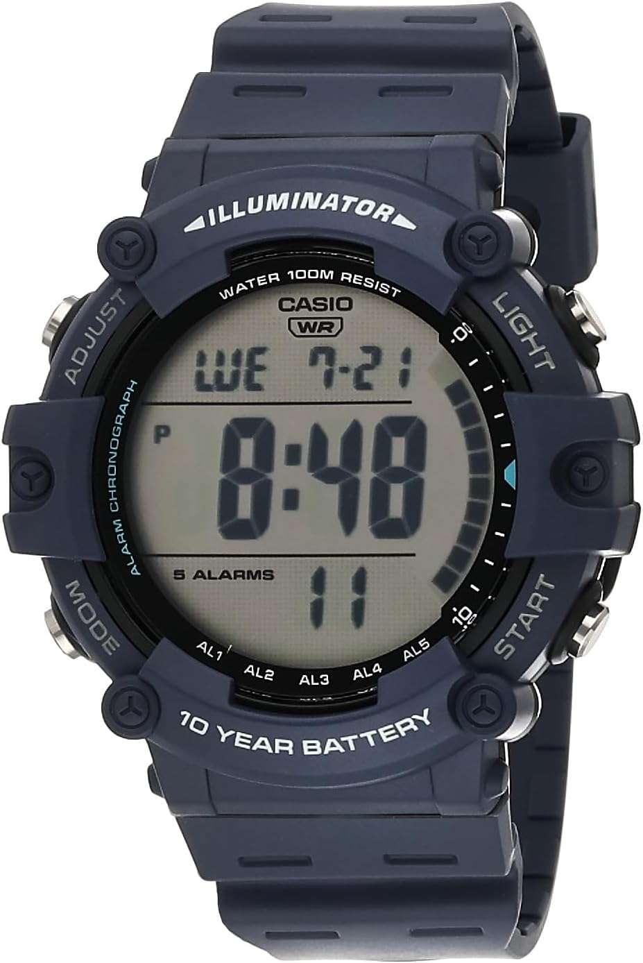 This watch features a range of functionalities that cater to active lifestyles, including five separate alarms for timely reminders and a 1/100 second stopwatch suitable for tracking laps and goals. Equipped with a countdown timer, it aids you in intervals and important tasks, ensuring you stay on track throughout your day. With a remarkable 10-year battery life, you can depend on the Casio Illuminator for long-lasting performance without the hassle of frequent battery changes.