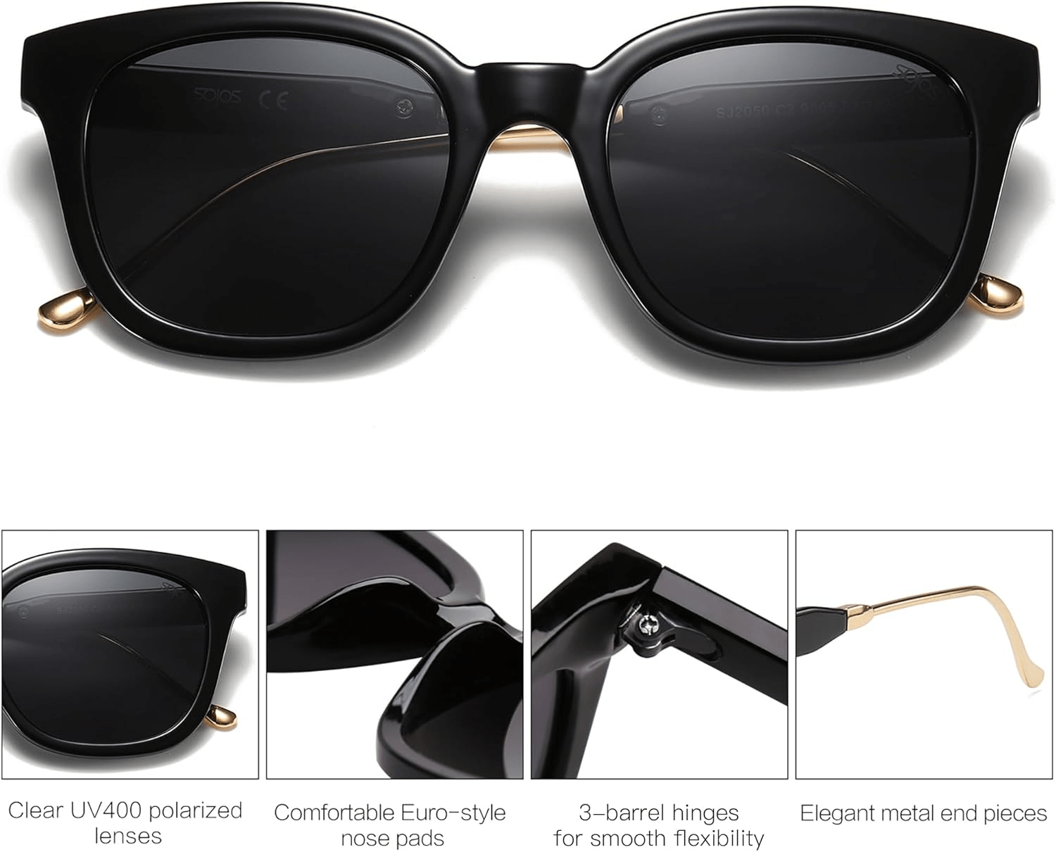 SOJOS SJ2050 Classic Square Polarized Sunglasses – Retro UV400 Sunnies for Men & Women