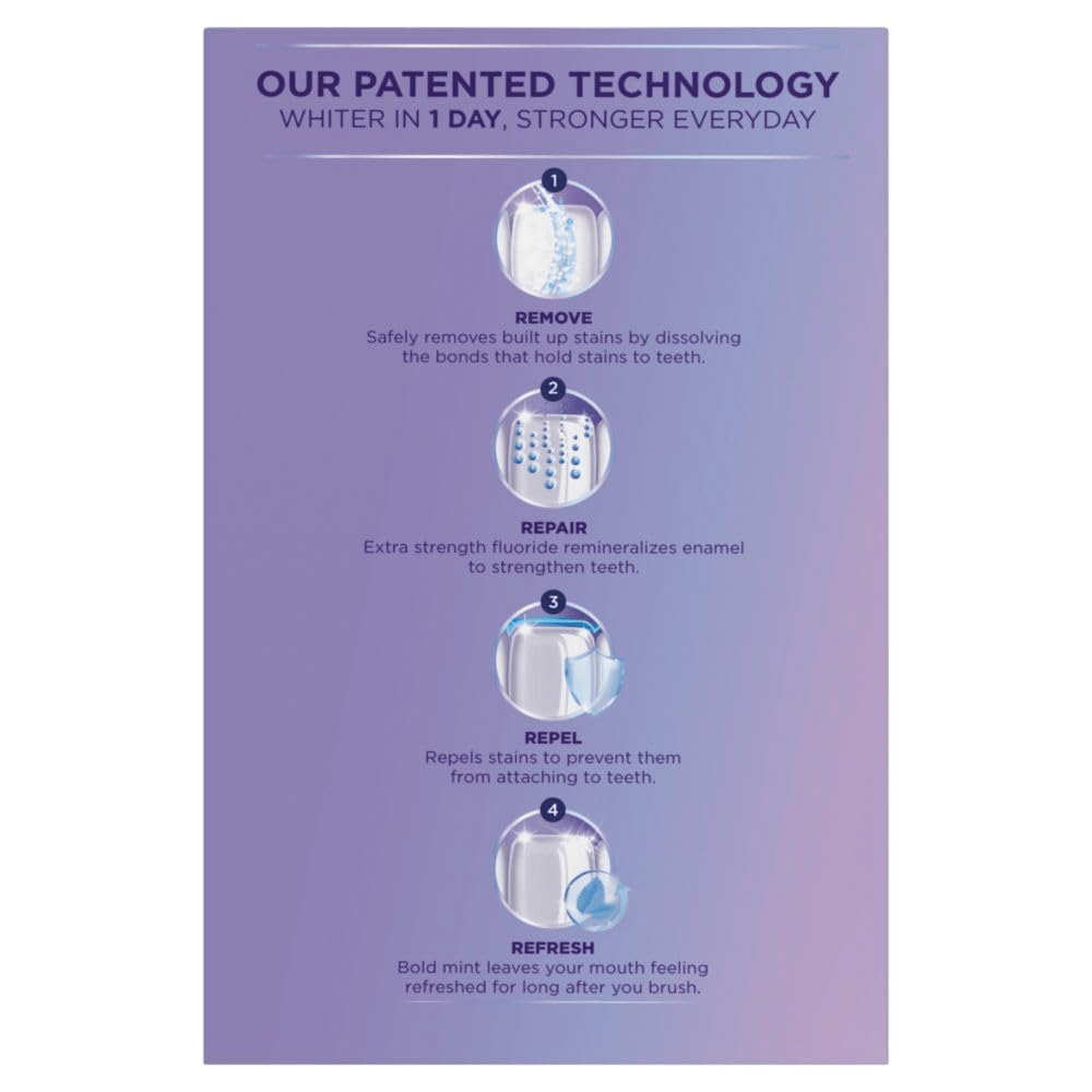 - FAST-ACTING FORMULA – Infused with patented whitening technology, say goodbye to waiting weeks for results; enjoy visibly whiter teeth after just one application.