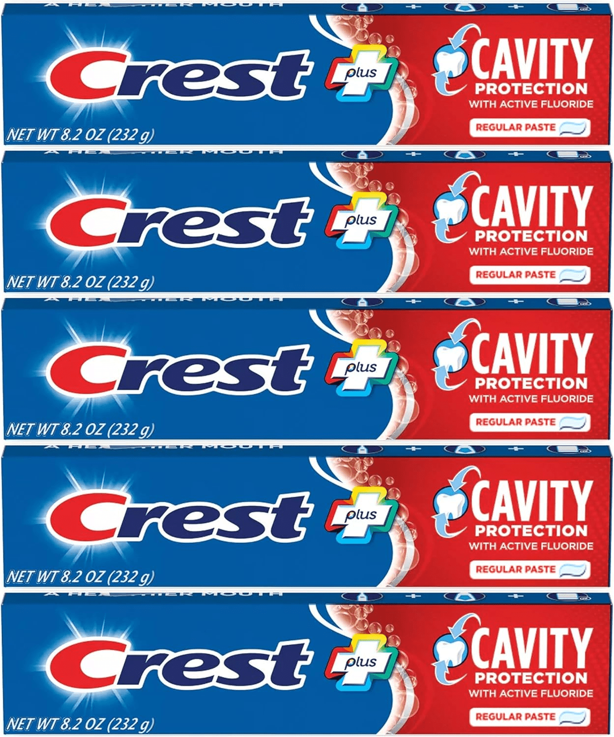 Introducing Crest Cavity Protection Toothpaste, your trusted ally in oral care. Designed meticulously to protect your teeth and exposed roots, this toothpaste provides comprehensive cavity protection for optimal dental health. With regular use, it effectively strengthens weak spots and fortifies your teeth against the formation of cavities. This makes it an essential component of your daily dental hygiene routine, ensuring a healthier, more resilient smile.