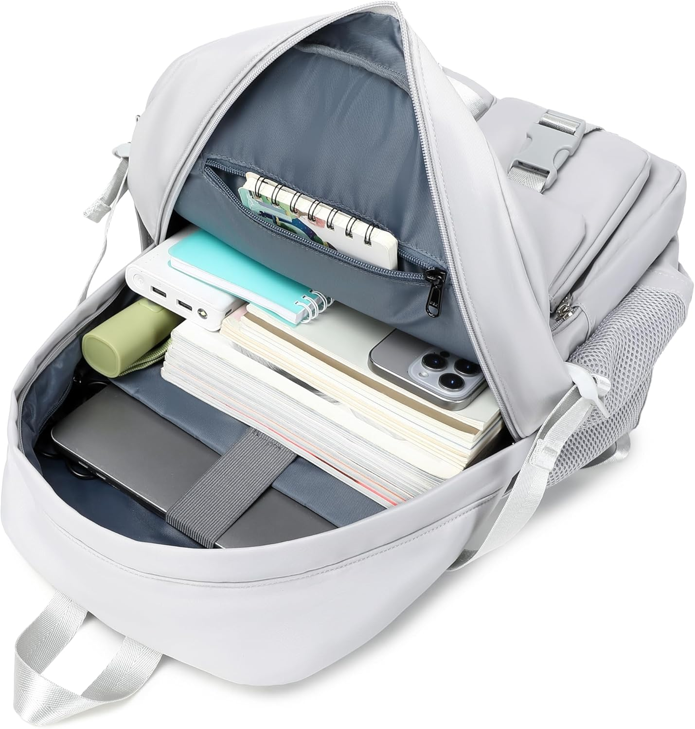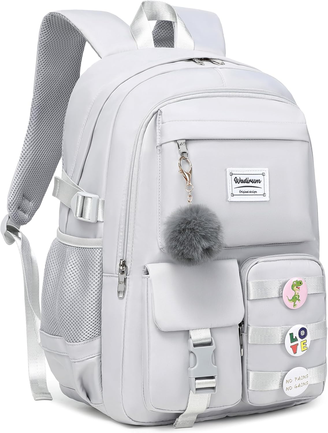 - With a chic, minimalist design in elegant grey, this backpack not only serves practical purposes but also enhances your fashion quotient. Its stylish appearance is perfect for school routines, daily activities, or short trips, appealing to modern young women who value both form and function.
