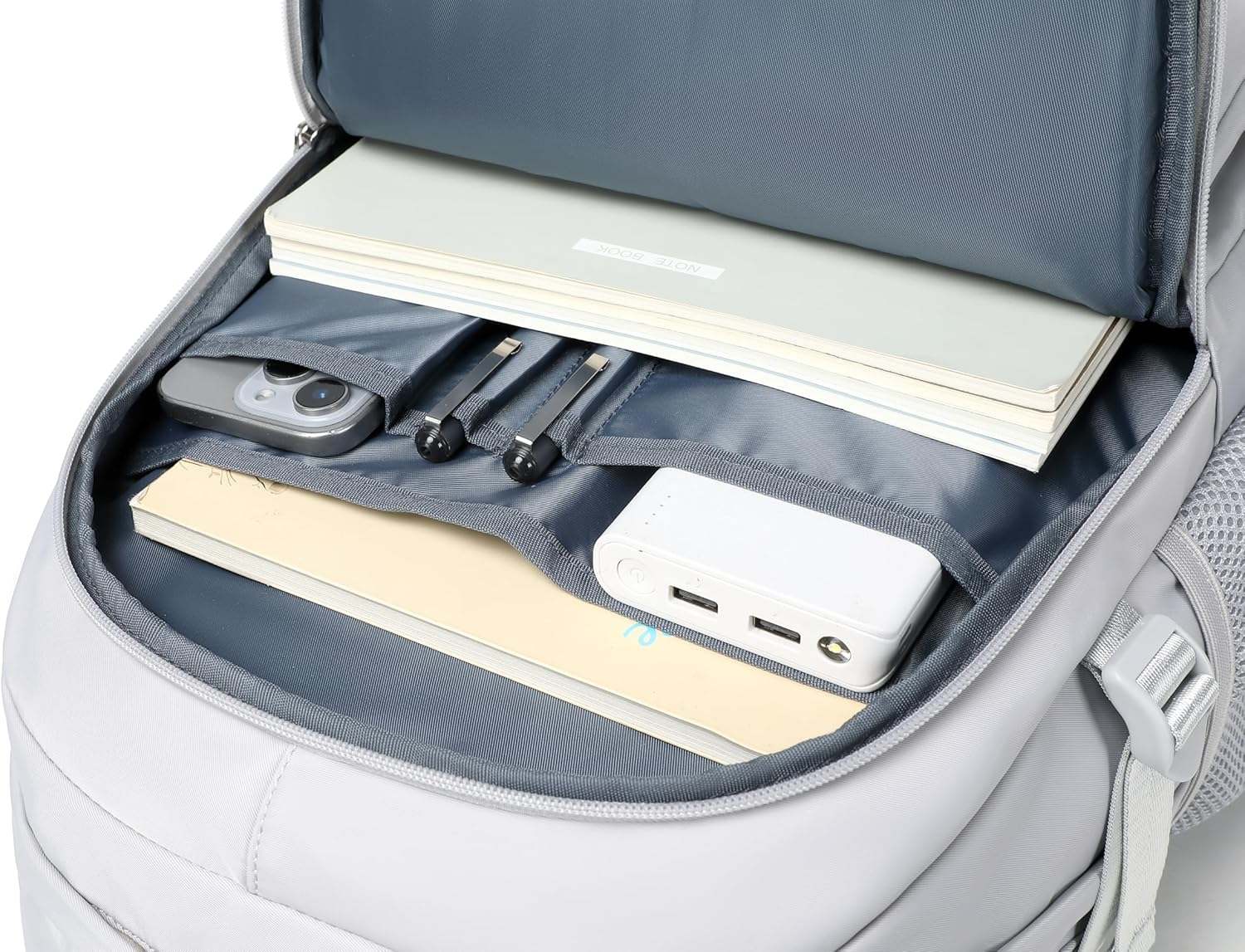 - This versatile backpack is designed to accommodate a range of items for daily use or weekend getaways. With a spacious main compartment that can comfortably hold clothes, towels, a laptop, or books, along with a well-organized front utility pocket that can house pens, keys, and chargers, you will have no trouble keeping your essentials in order. Furthermore, two elastic mesh side pockets are perfect for your water bottle or umbrella, making it a great companion for both school and travel.
