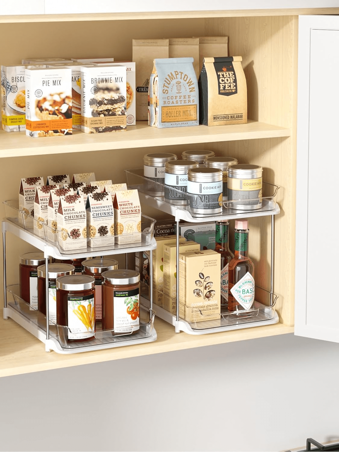 • Stackable Pantry Storage Organizer: What sets this pull out cabinet organizer apart is that you can stack 3 at a time according to space needs, which means it is a must-have space saver! it is very useful for organizing to hold spice jars, medicines bottles, beverages, canned goods, grab-and-go snacks, and even a variety of health/beauty aides, and small items.