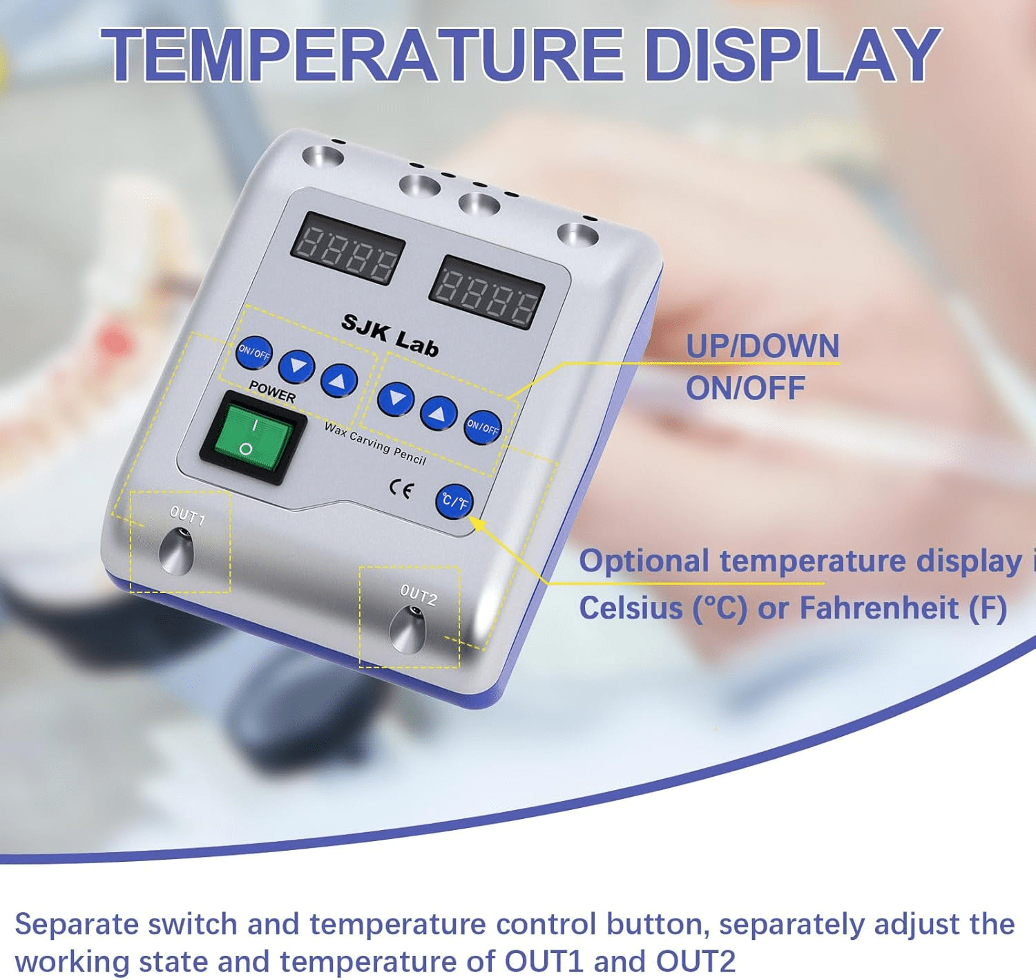 - 【User-Friendly Design】Featuring a clear LED display and a simple Celsius/Fahrenheit switch, this dental electric wax carver allows for precise temperature adjustments ranging from 50 °C to 200 °C (122 °F to 392 °F). The unit automatically maintains the set temperature, ensuring consistent performance for all your wax carving needs.