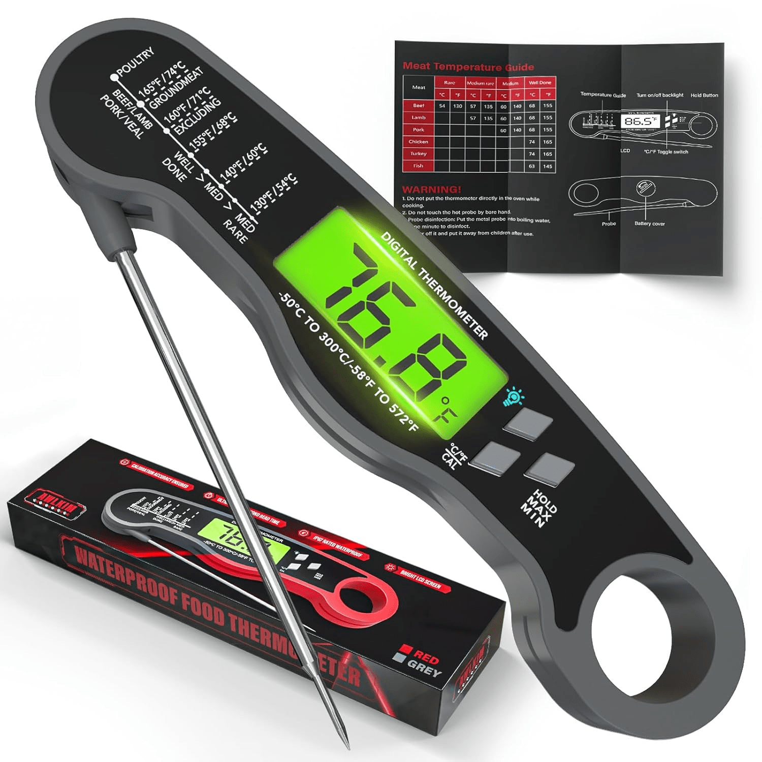 Digital Meat Thermometer for Cooking – Waterproof Kitchen Thermometer with Backlight and Hold, Fast Instant Read Food Thermometer, Candy Making, outside Grill, Stocking Stuffers for Adult Men