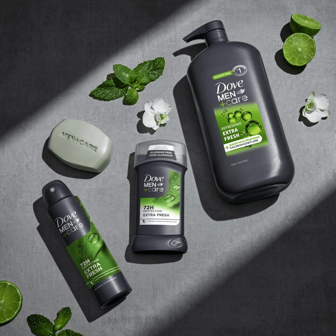 - FOR HEALTHIER, SMOOTHER FEELING SKIN ALL DAY: Dove Men+Care Extra Fresh men’s body and face wash hydrates your skin to keep it feeling healthy and smooth throughout your daily activities.