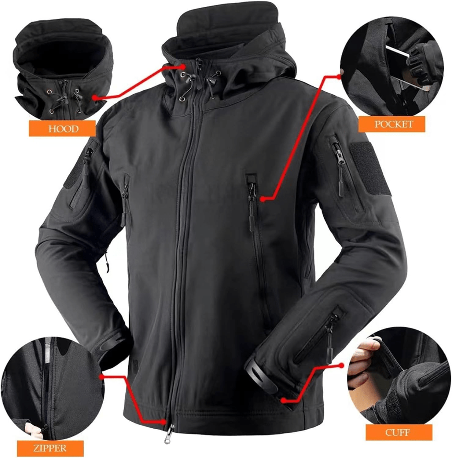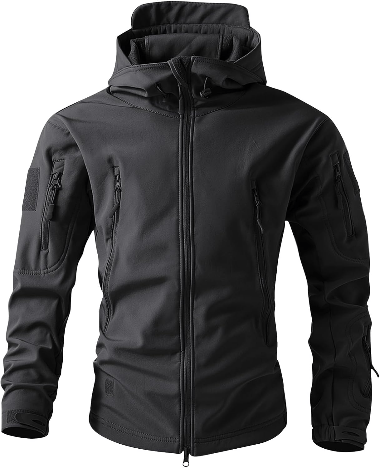 Equipped with a full-length front zipper for easy wear, this jacket also features an adjustable hood that adds extra protection against the elements. Practicality is at the forefront of its design, with multiple spacious pockets, including chest compartments and a sleeve pocket, securely housing your essentials like mobile devices, wallets, and keys. With reinforced stitching for enhanced durability and adjustable hook-and-loop cuffs for a tailored fit, this jacket excels in comfort and functionality. The sleek, military-inspired aesthetic ensures not only that you look good but that the jacket is versatile enough for a range of environments.