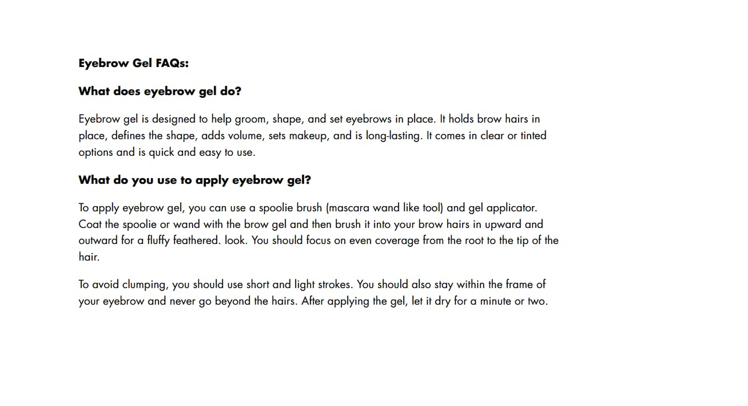 - HOW TO USE: Begin by dampening the spoolie of the Brow Lift Applicator with water. Apply a small amount of the Clear Eyebrow Gel directly to your brows using the flat end. Brush the spoolie through the gel and your brows, directing the hair upwards for a voluminous look that endures.