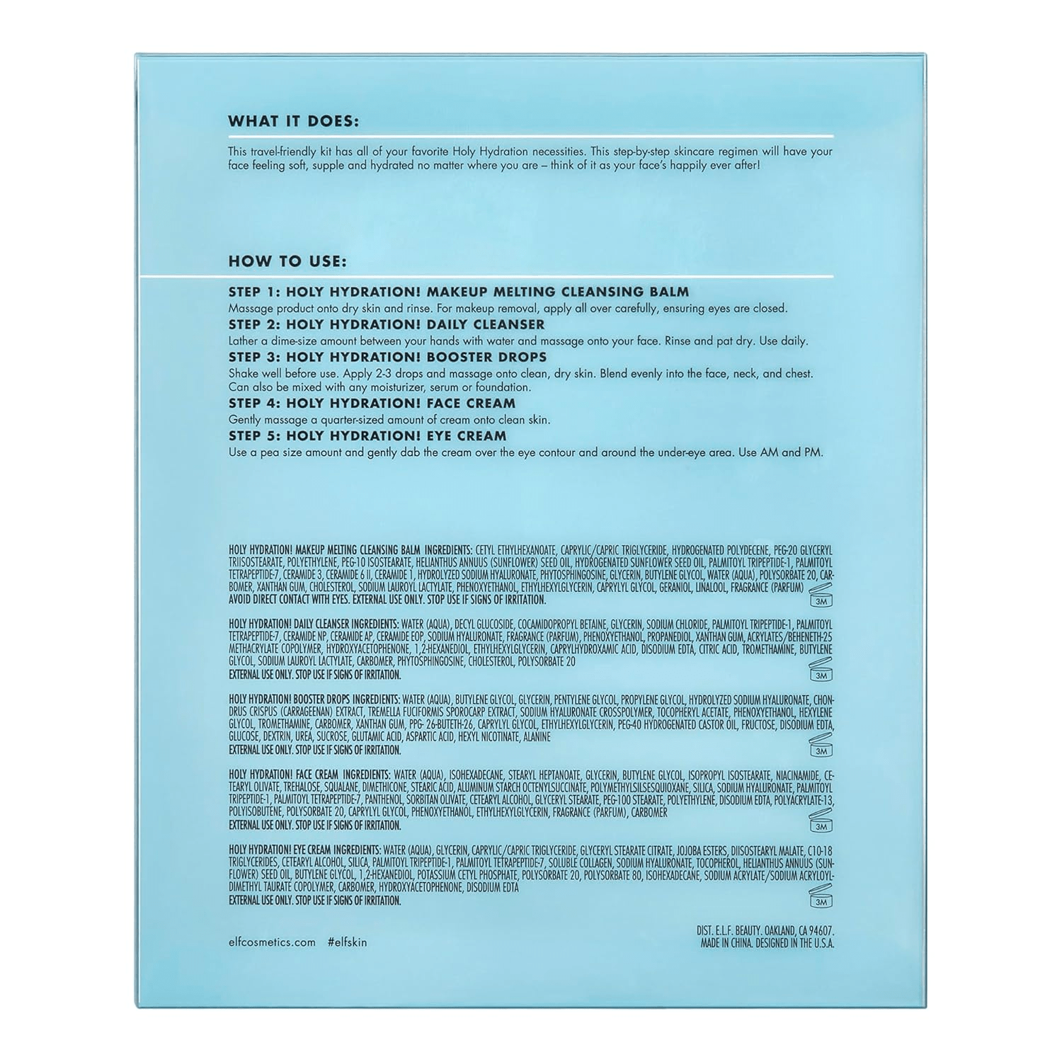 - A COMPLETE HYDRATION REGIMEN: This skincare kit has all of your favorite Holy Hydration necessities- a Holy Hydration. Daily Cleanser, Holy Hydration. Makeup Melting Cleansing Balm, Hydrating Booster Drops, Holy Hydration. Face Cream and Eye Cream.