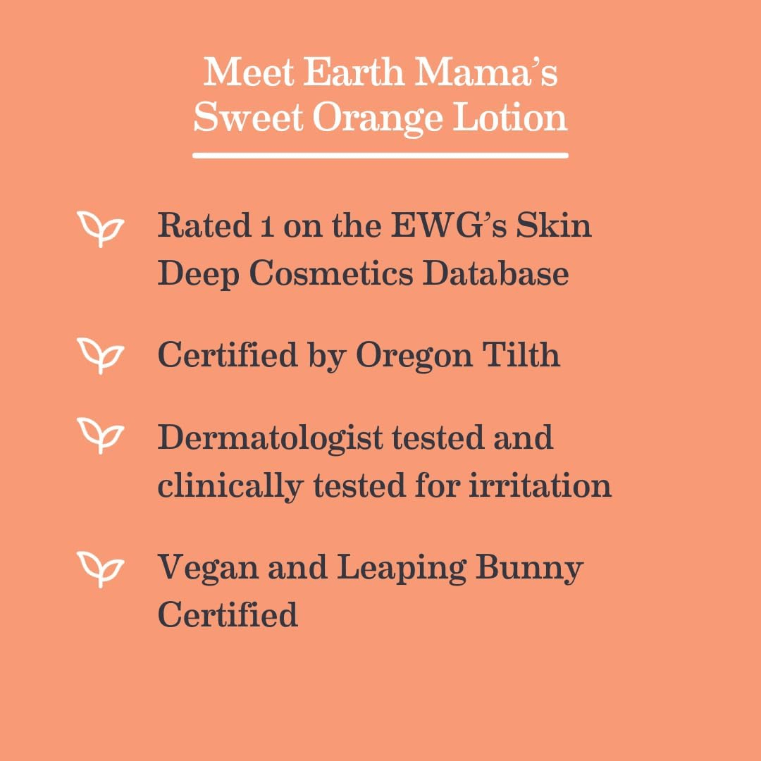 • MOISTURIZING AND SOOTHING SWEET ORANGE CALENDULA LOTION: Earth Mama’s hydrating and refreshing lotion is the ideal solution for sensitive or brand-new skin, providing the utmost care for your baby’s delicate complexion.