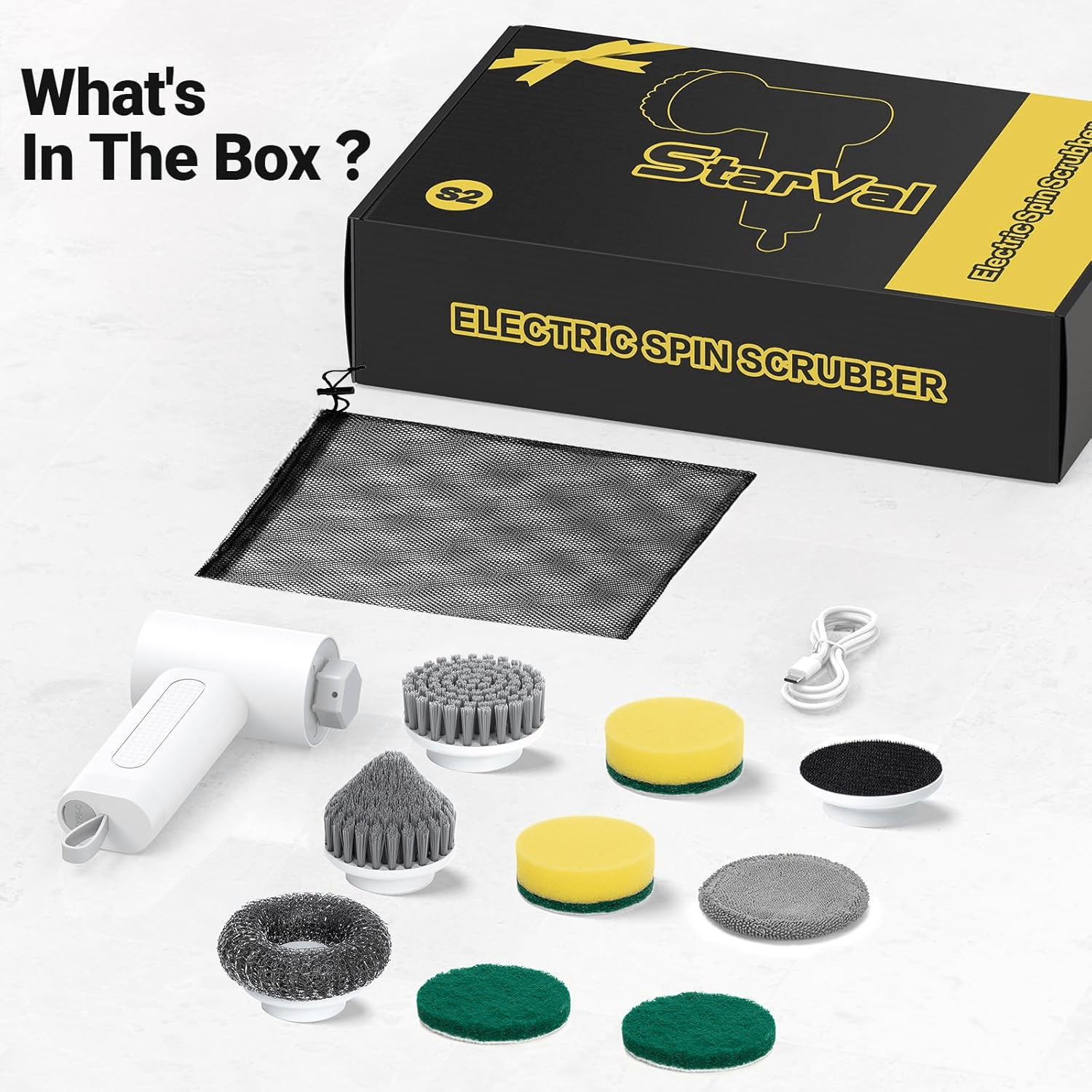 The Electric Spin Scrubber offers a revolutionary cleaning experience with its cordless design and powerful 3000 mAh battery. Ideal for various cleaning tasks, this handy device features a diverse selection of 8 replaceable brush heads tailored to meet the unique demands of kitchens, bathrooms, and other hard-to-reach areas. Whether you are scrubbing the grime from a bathtub, restoring shine to your kitchen stove, or tackling dirt in grout lines, this electric scrubber simplifies the cleaning process, allowing you to achieve exceptional results with minimal effort.