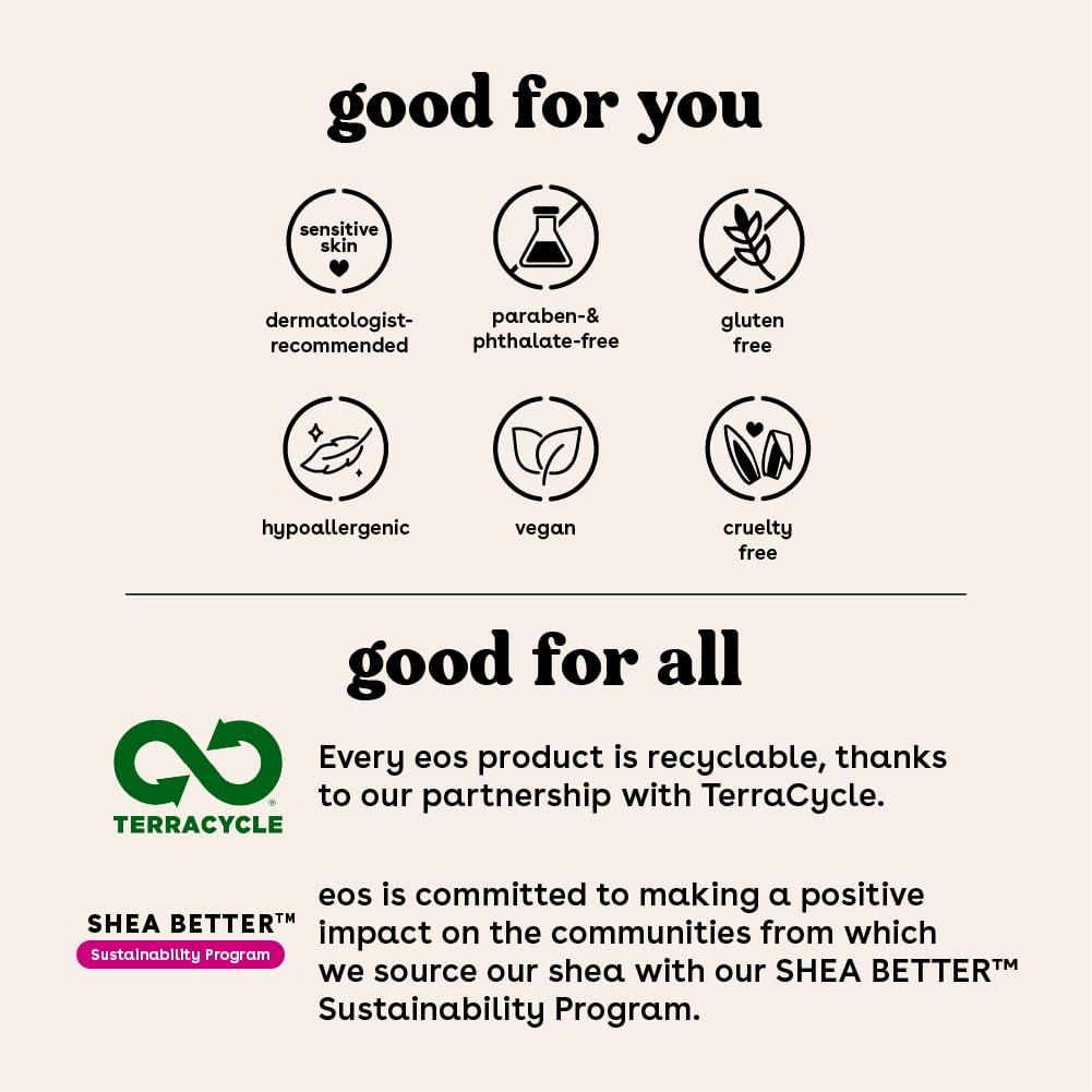 - eos PRODUCTS PROMISE: Our Cashmere Skin Collection has been dermatologist-tested, is specially formulated for sensitive skin, and is both paraben and phthalate-free, as well as cruelty-free.