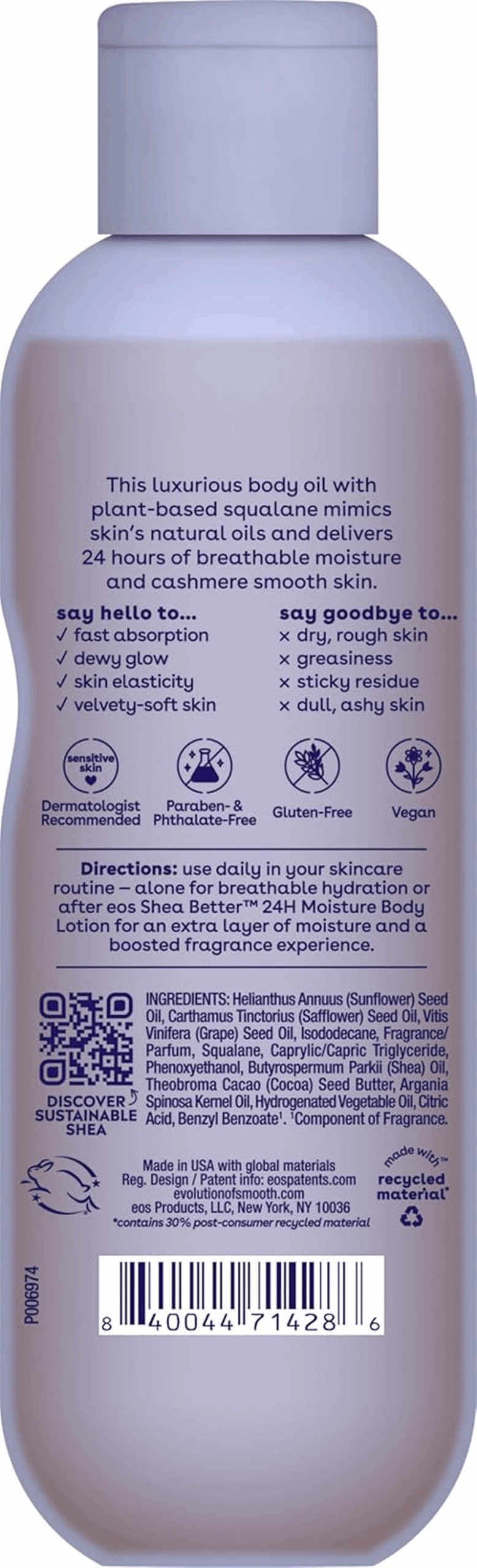Introducing the latest luxurious addition to our acclaimed Cashmere Skin Collection: eos Cashmere Shave Oil. This exceptionally silky shave oil not only provides a protective barrier against irritation and razor burn but also ensures a remarkably smooth shaving experience. Crafted with the innovative Cashmere Smooth Complex, it features a blend of nourishing shea butter, deeply hydrating cocoa butter, and gentle argan butter to replenish and soothe your skin as you shave. Perfect for all body areas—including the sensitive bikini zone—this shave oil elevates your grooming routine to new heights of comfort and elegance.