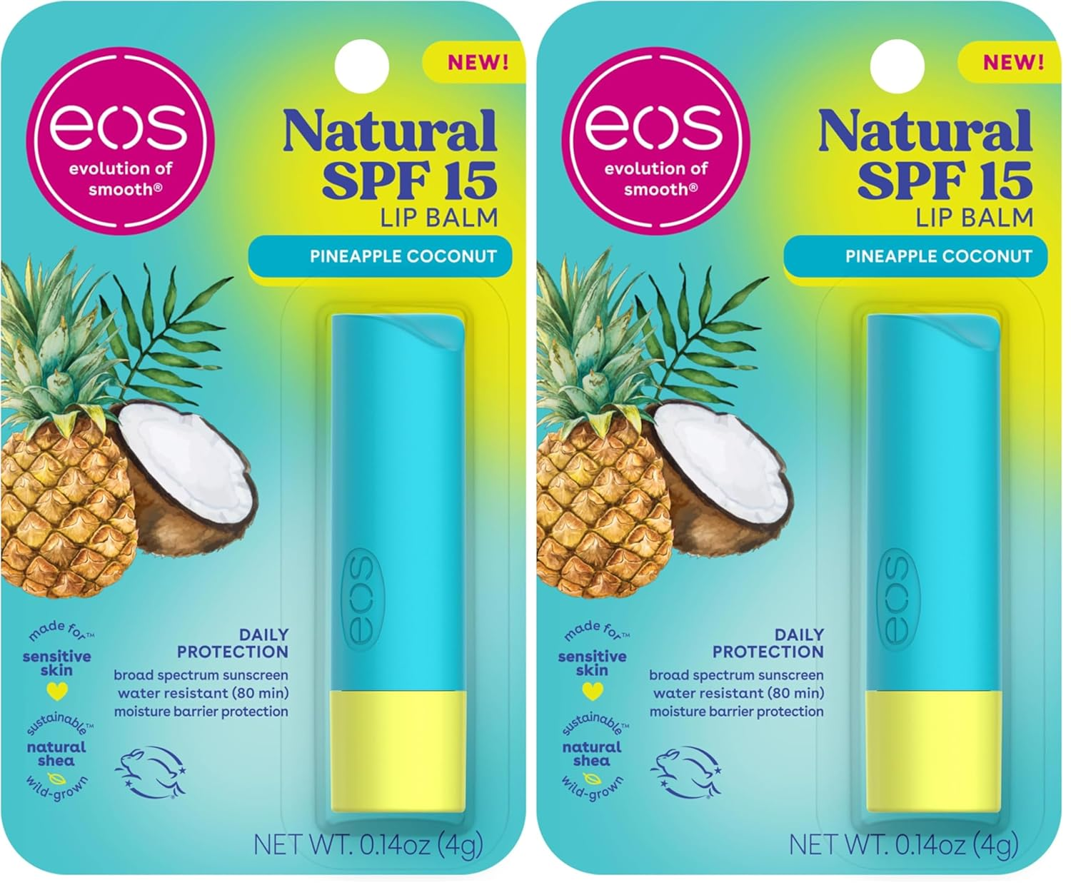 - COCONUT LIP TREATMENT WITH SPF 15: Experience the bliss of a tropical getaway with eos 100% natural SPF 15 lip balm, infused with the delightful flavors of coconut and pineapple. This refreshing lip treatment not only tastes delicious but also effectively protects your lips from harmful UV rays.